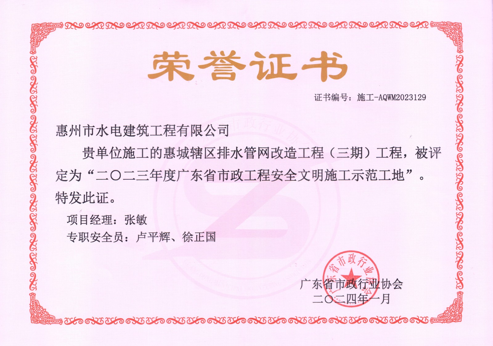 廣東省市政工程安全文明施工示范工地——惠城轄區(qū)排水管網(wǎng)改造工程三期