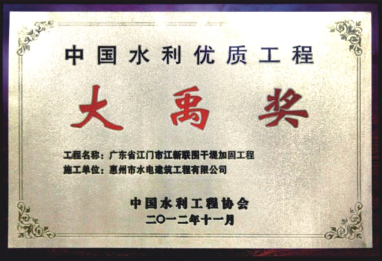 中國水利工程優(yōu)質(zhì)(大禹)獎(jiǎng)——廣東省江門市江新聯(lián)圍干堤加固工程