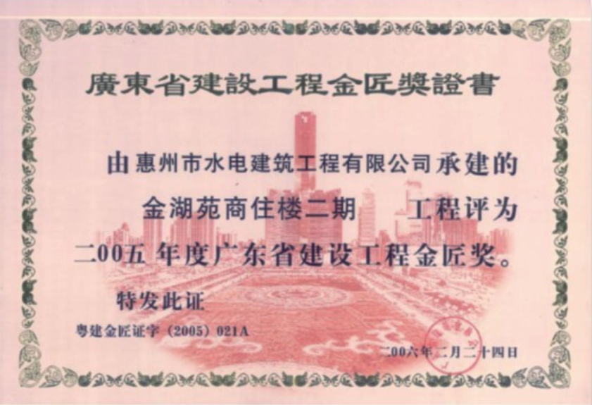 廣東省建設(shè)工程金匠獎(jiǎng)——金湖苑商住樓二期
