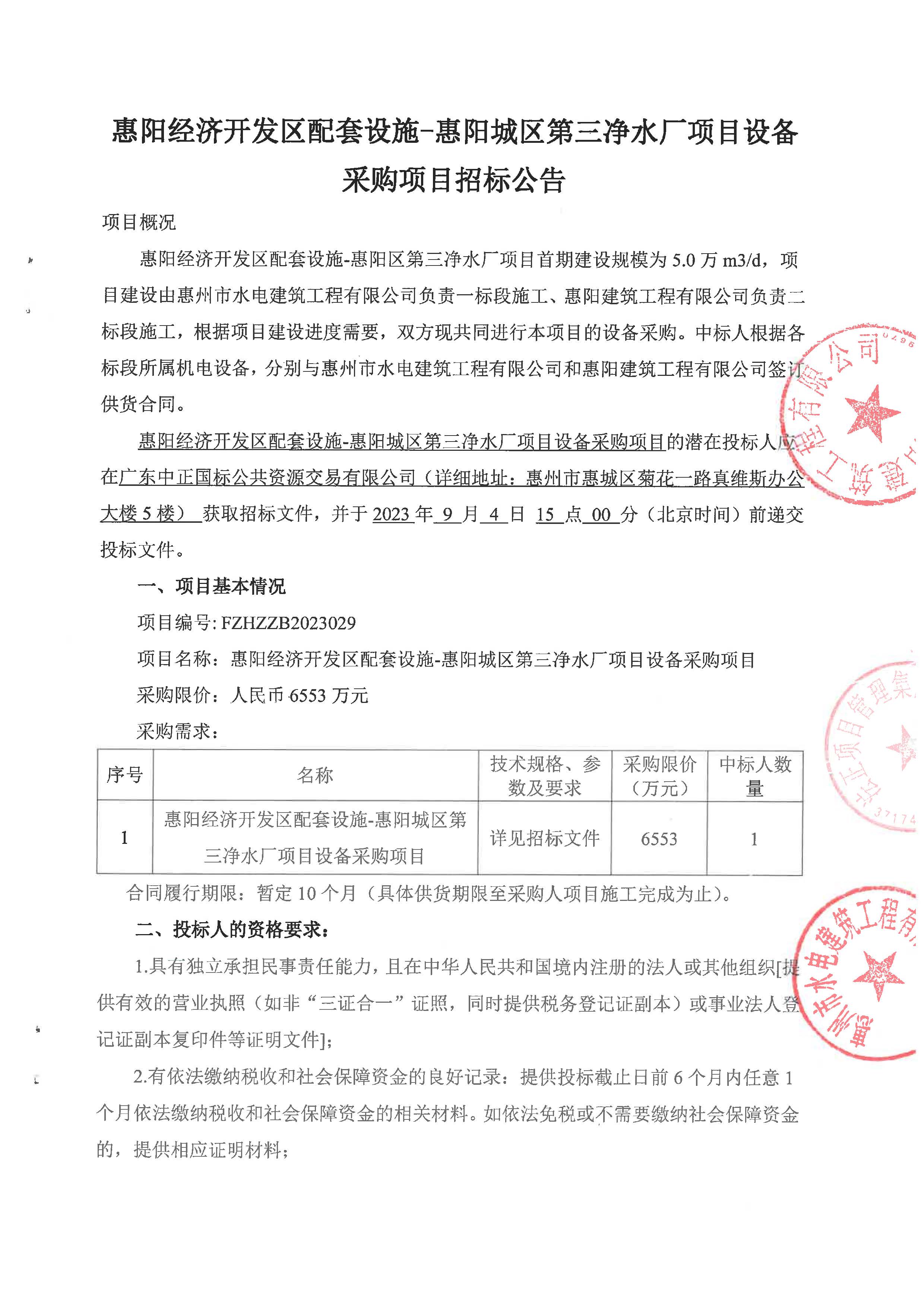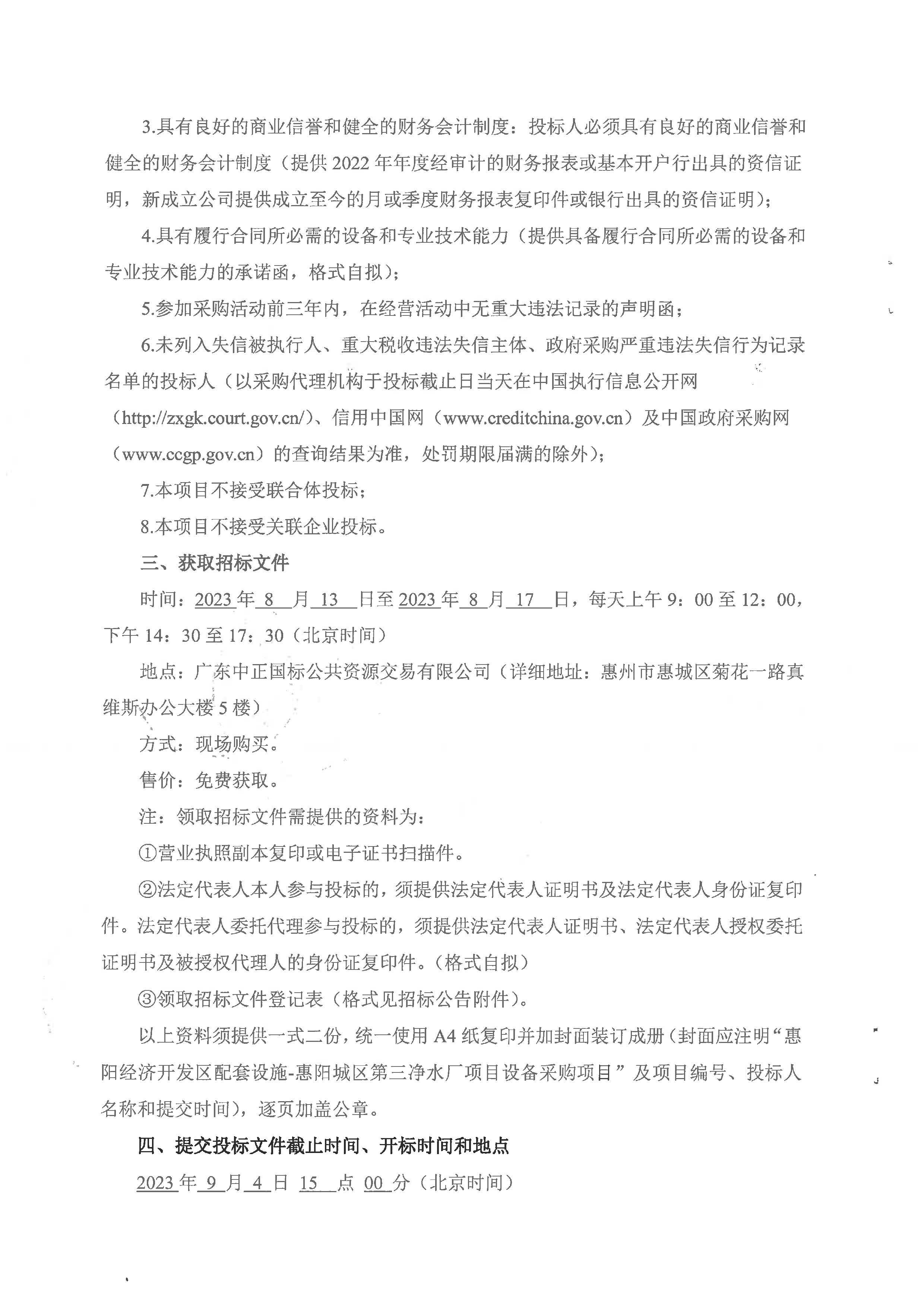 惠陽經(jīng)濟(jì)開發(fā)區(qū)配套設(shè)施-惠陽城區(qū)第三凈水廠項(xiàng)目設(shè)備采購項(xiàng)目招標(biāo)公告