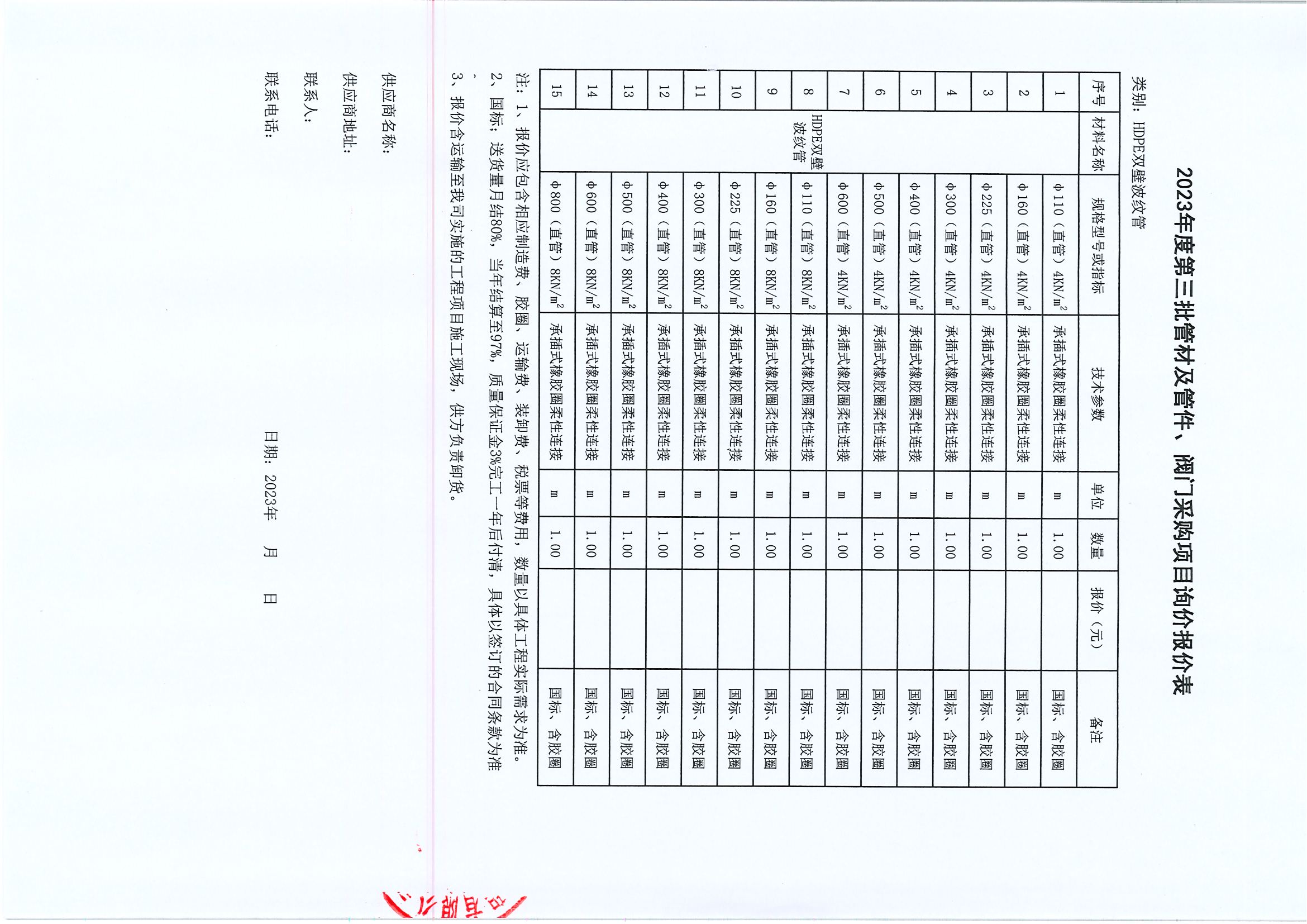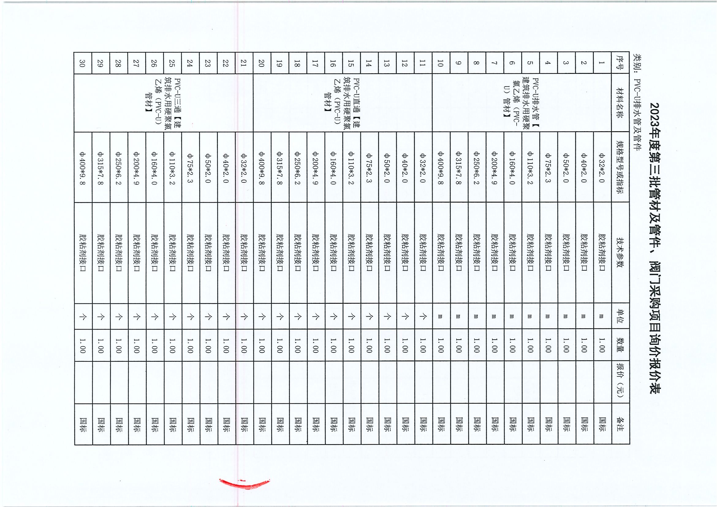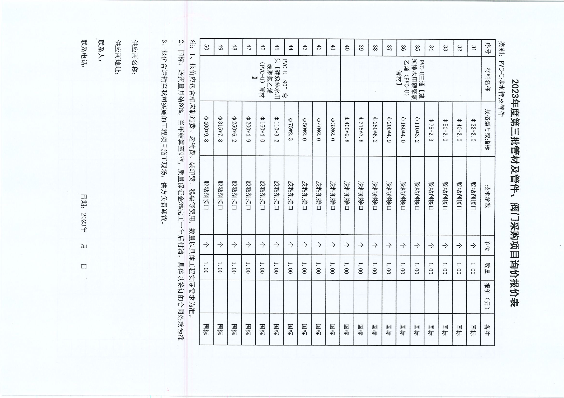 附件:2023年度第三批管材及管件、閥門采購(gòu)項(xiàng)目詢價(jià)報(bào)價(jià)表