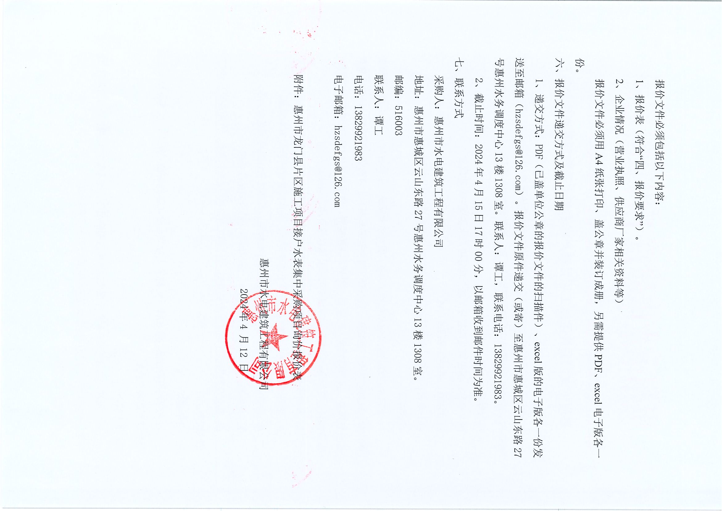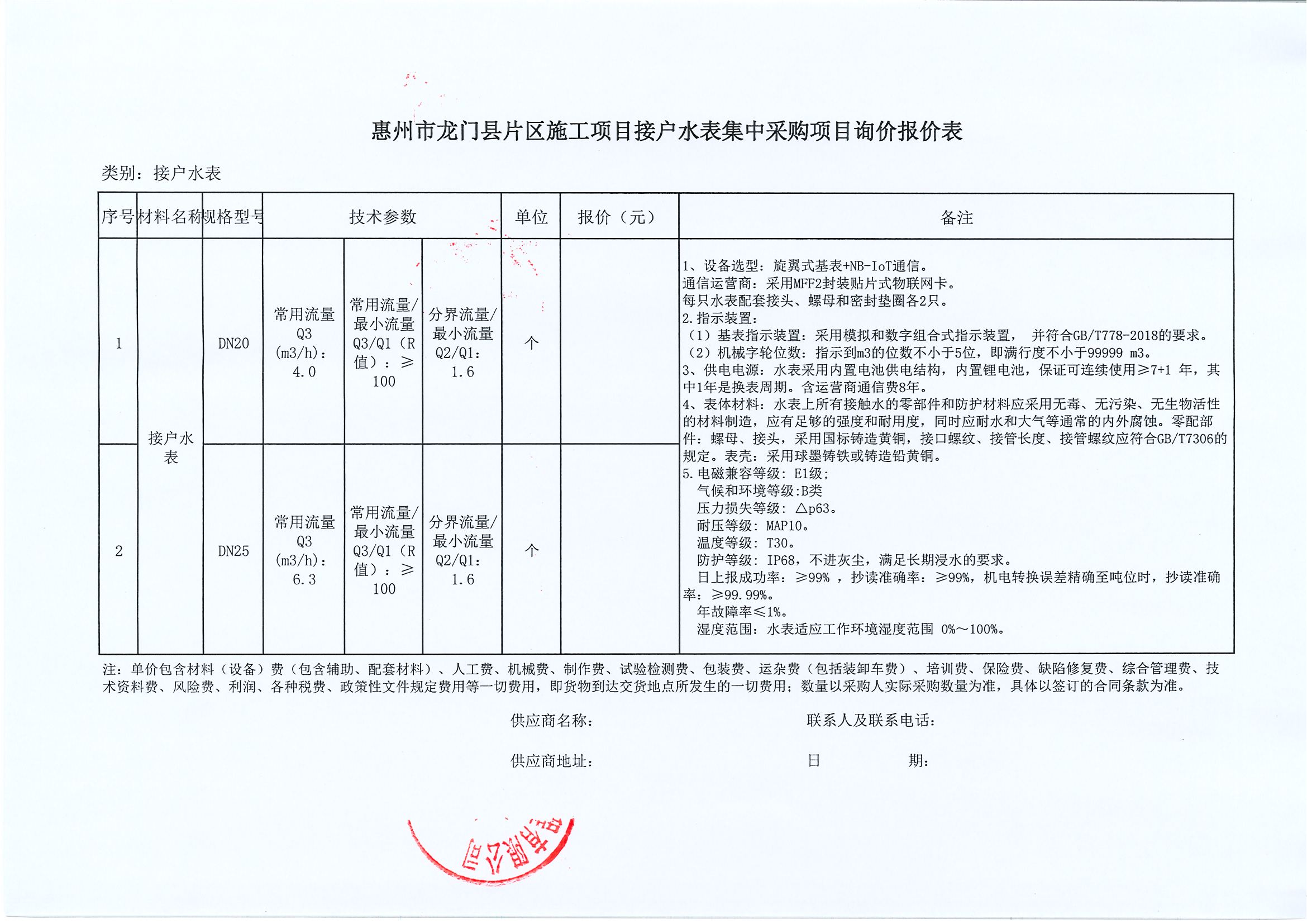 惠州市龍門縣片區(qū)施工項目接戶水表集中采購項目詢價公告