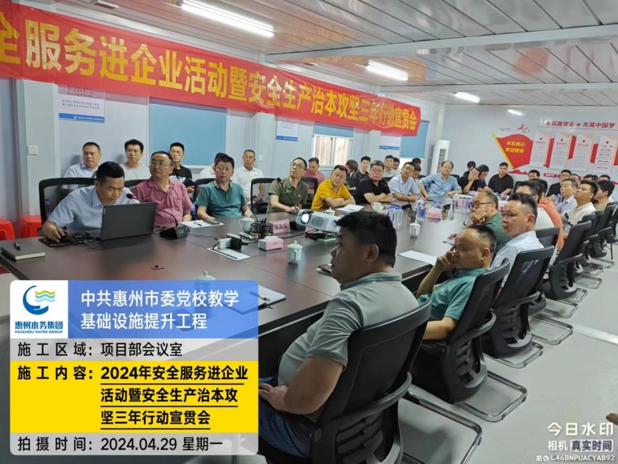 為有效推進安全生產(chǎn)治本攻堅三年行動與日常安全工作有機融合,進一步夯實公司施工安全生產(chǎn)基礎,2024年4月29日下午,公司會同惠州市施工安全監(jiān)督總站,在中共惠州市委黨校教學基礎設施提升工程項目部舉辦了“安全服務進企業(yè)活動暨安全生產(chǎn)治本攻堅三年行動宣貫會”。