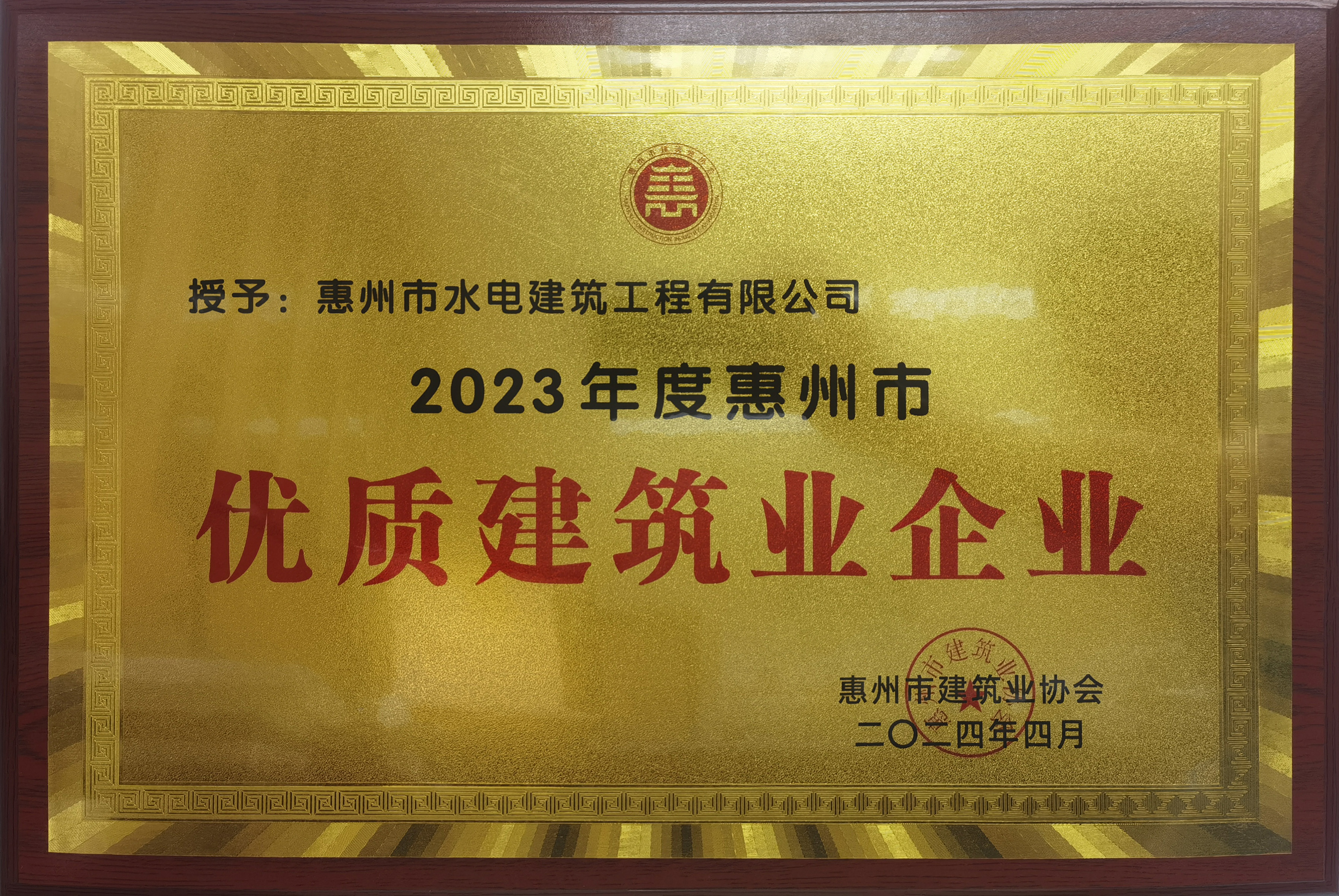 5月14日,惠州市住房和城鄉(xiāng)建設(shè)局舉行2023年度惠州市優(yōu)質(zhì)建筑業(yè)企業(yè)授牌儀式,公司繼2021、2022年度后,再次獲評(píng)為2023年度“優(yōu)質(zhì)建筑業(yè)企業(yè)”。