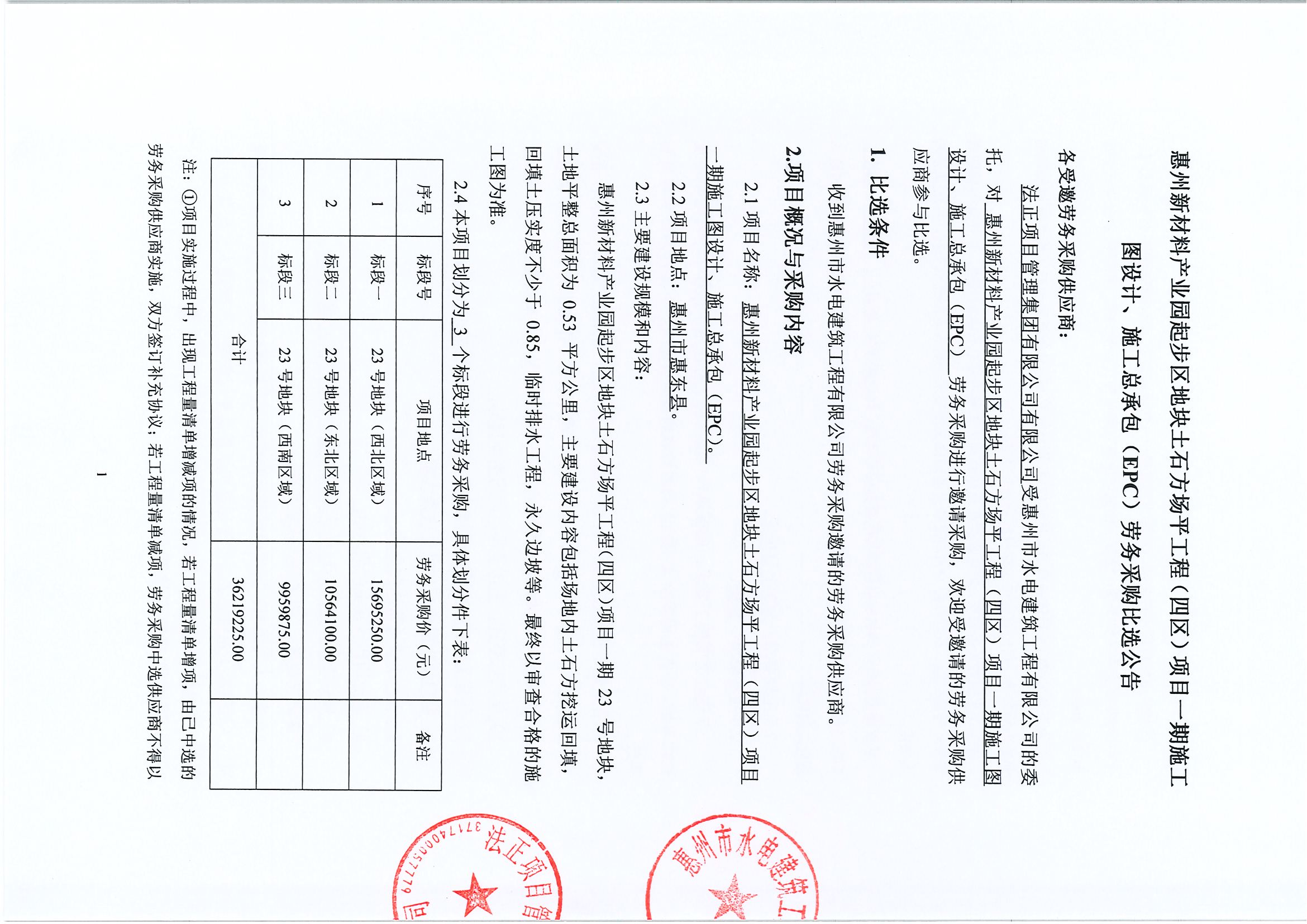惠州新材料產(chǎn)業(yè)園起步區(qū)地塊土石方場平工程(四區(qū))項目一期施工圖設計、施工總承包(EPC)勞務采購比選公告