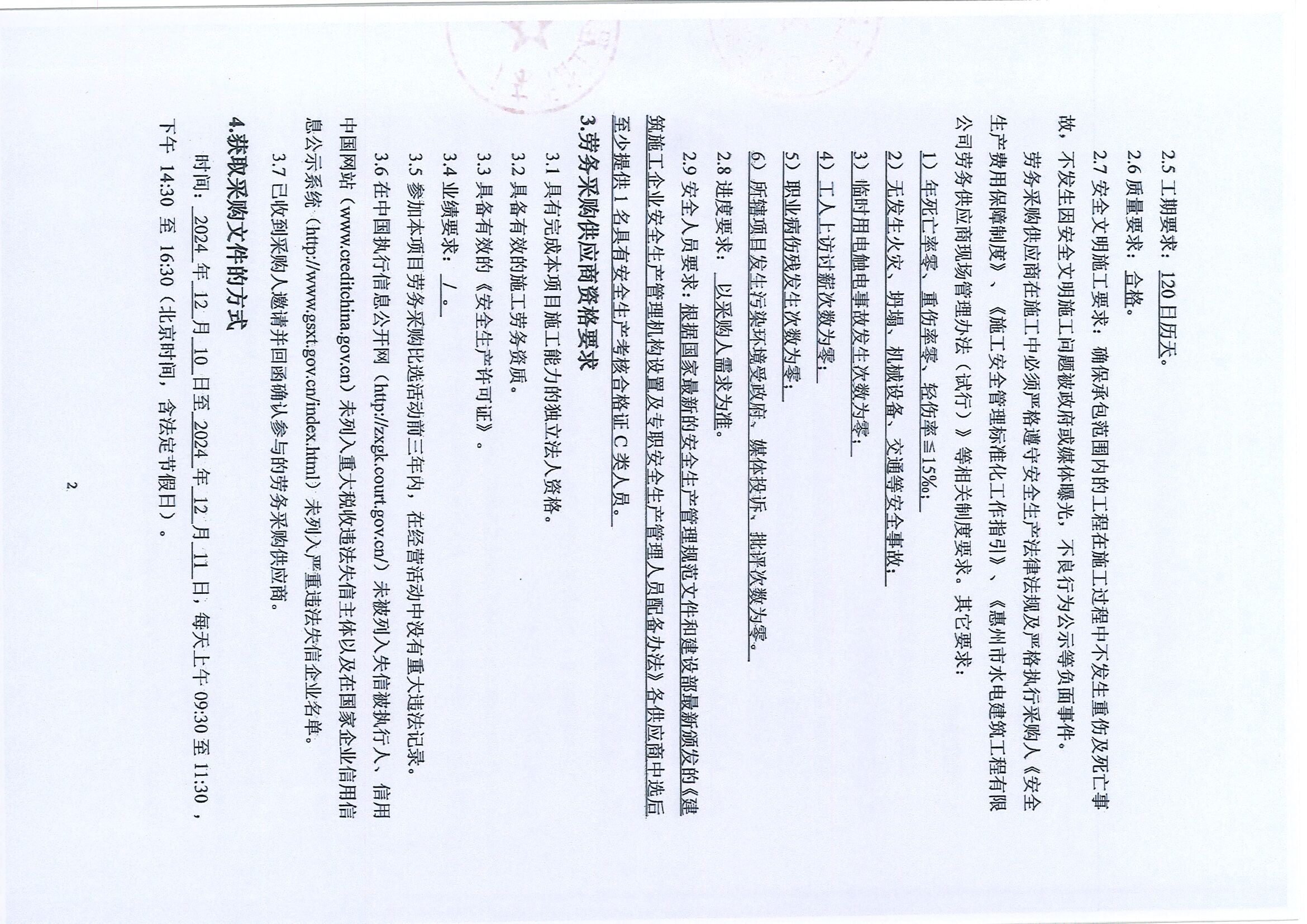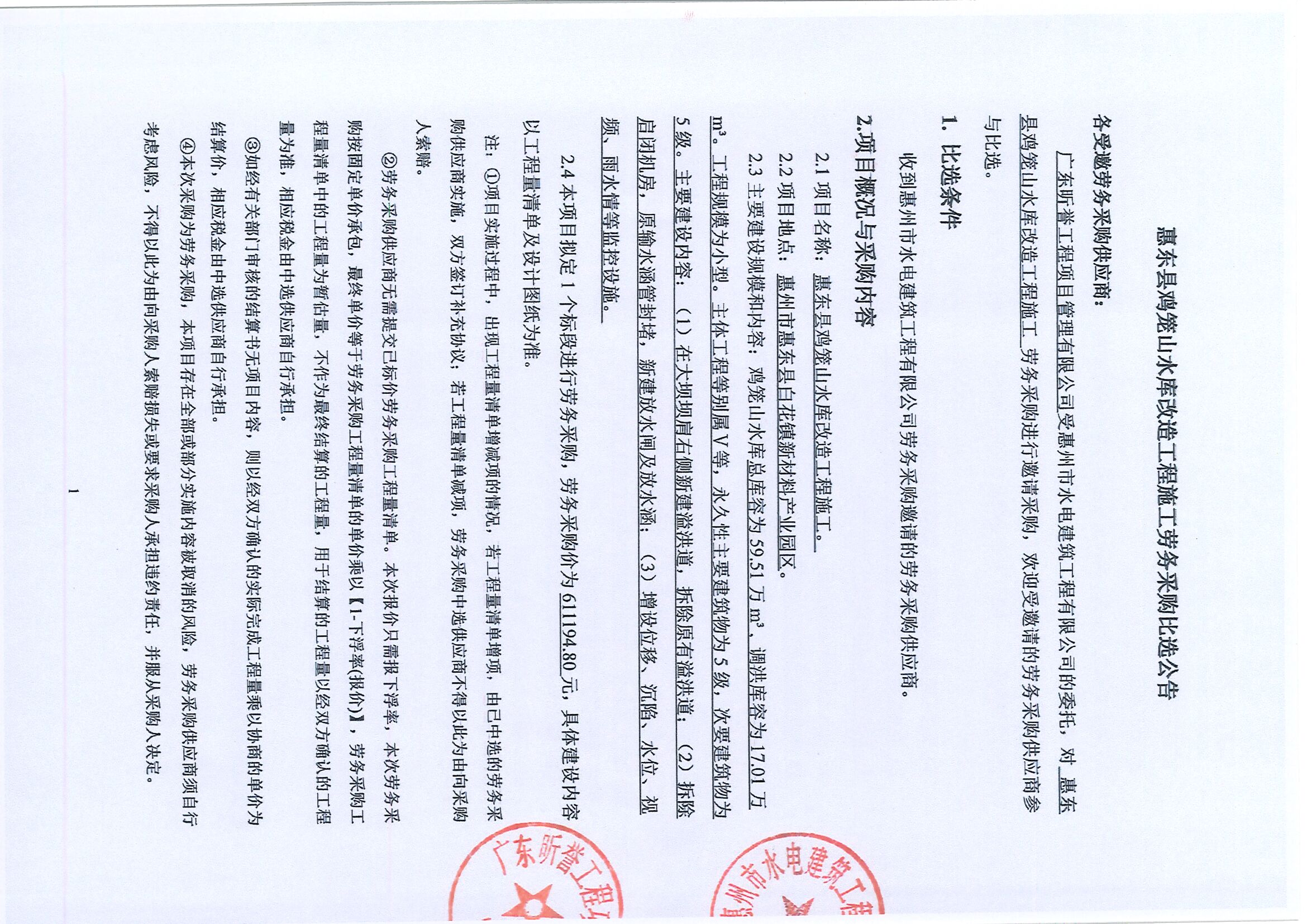 惠東縣雞籠山水庫改造工程施工勞務(wù)采購比選公告