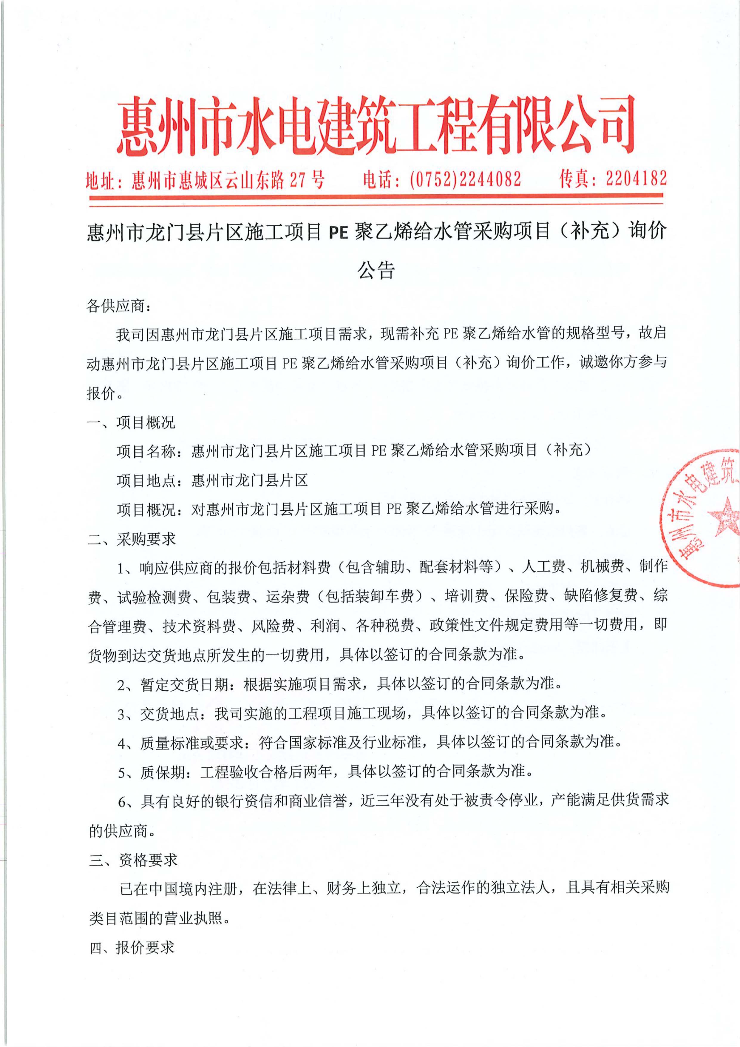 惠州市龍門縣片區(qū)施工項(xiàng)目PE聚乙烯給水管采購項(xiàng)目(補(bǔ)充)詢價(jià)公告附件:/upload/202502/27/202502271448126455.xls