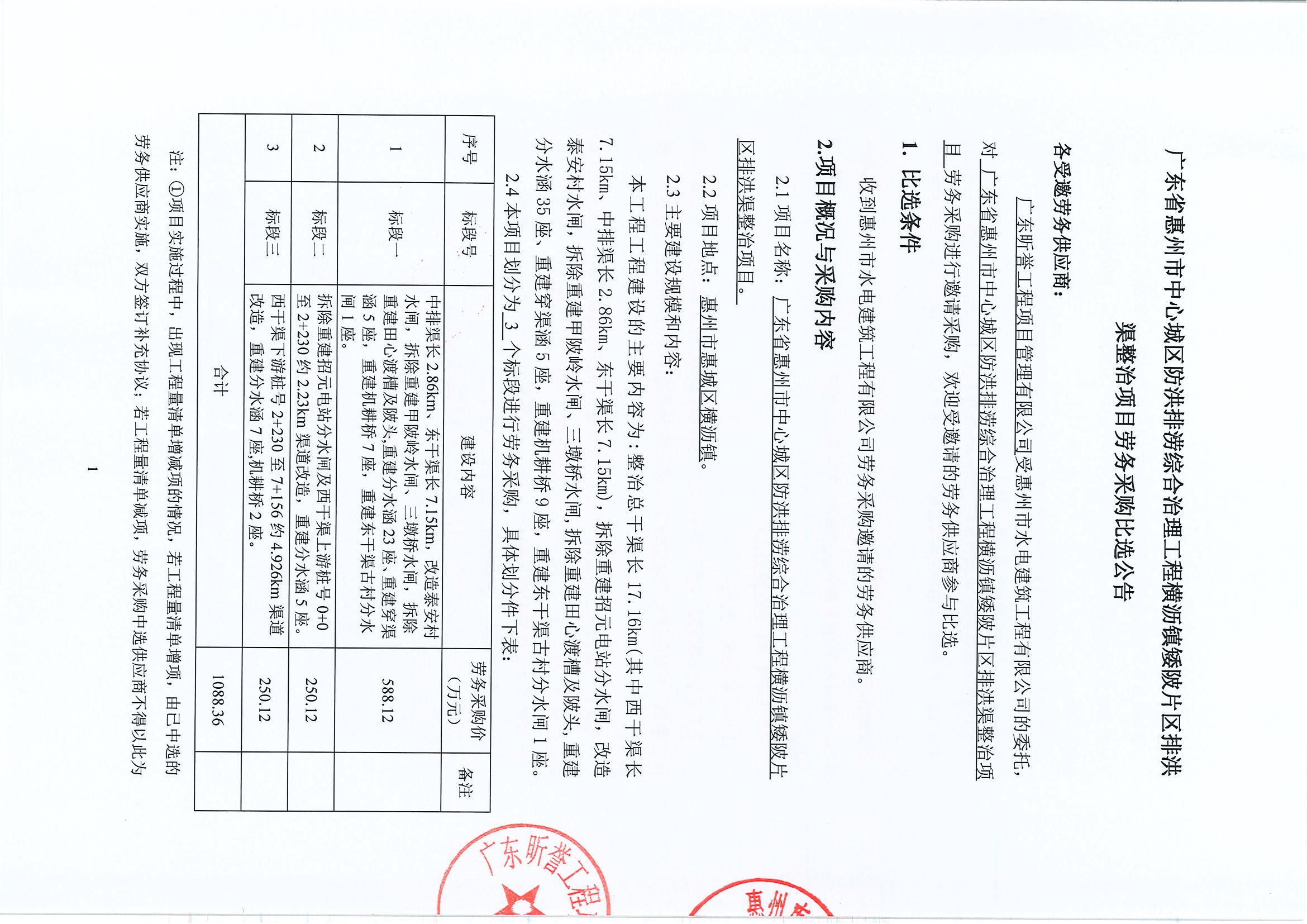 廣東省惠州市中心城區(qū)防洪排澇綜合治理工程橫瀝鎮(zhèn)矮陂片區(qū)排洪渠整治項目勞務(wù)采購比選公告