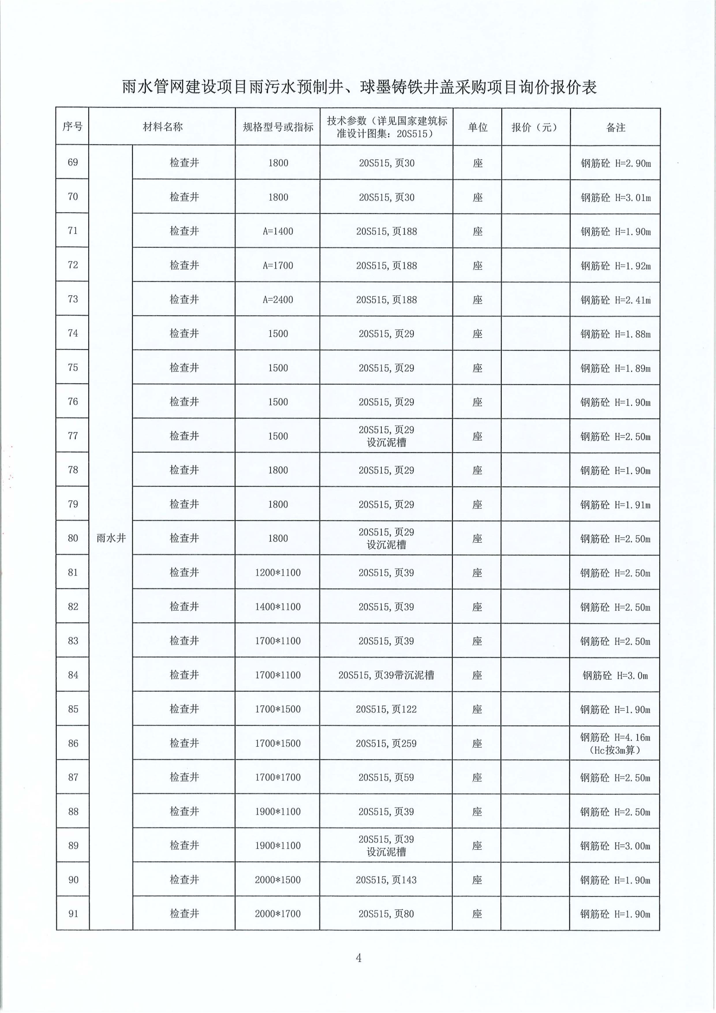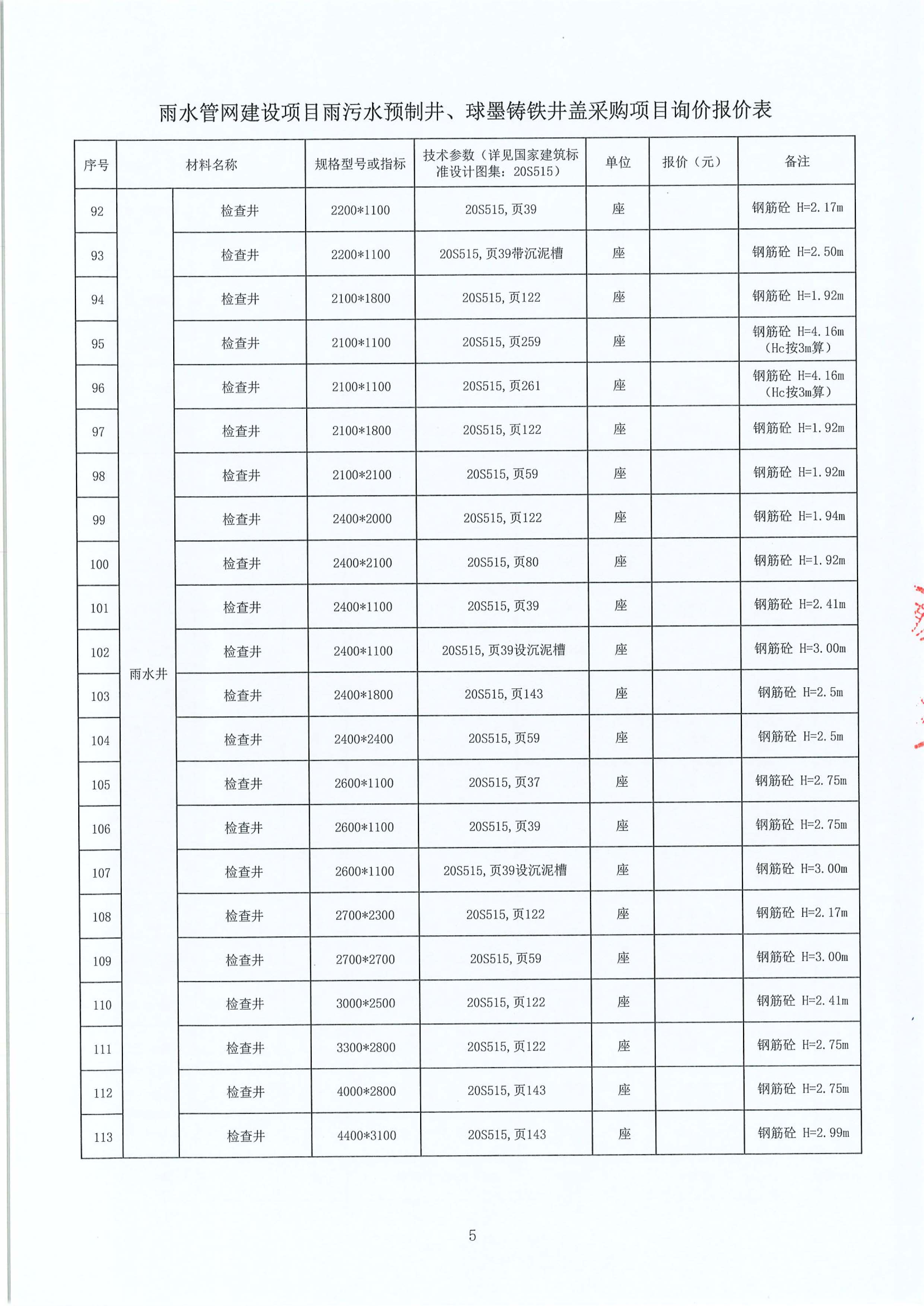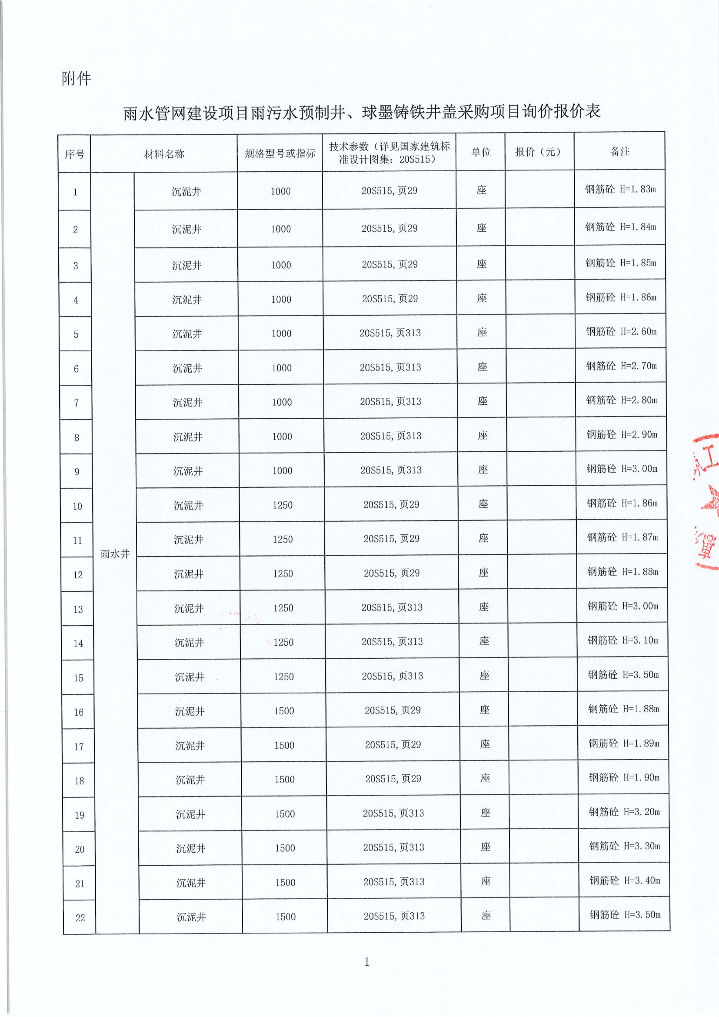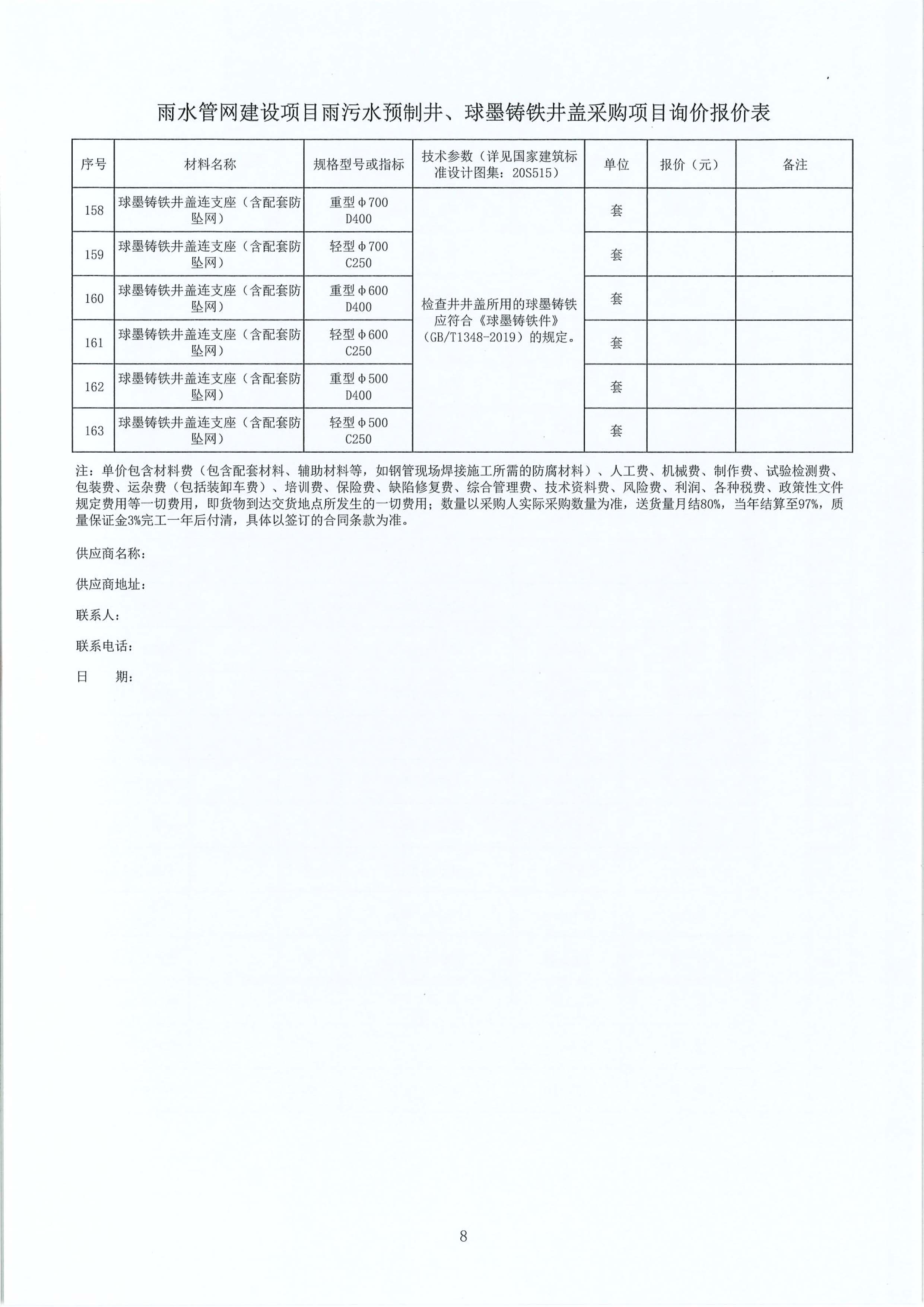 雨水管網(wǎng)建設(shè)項目雨污水預(yù)制井、球墨鑄鐵井蓋采購項目詢價公告附件: