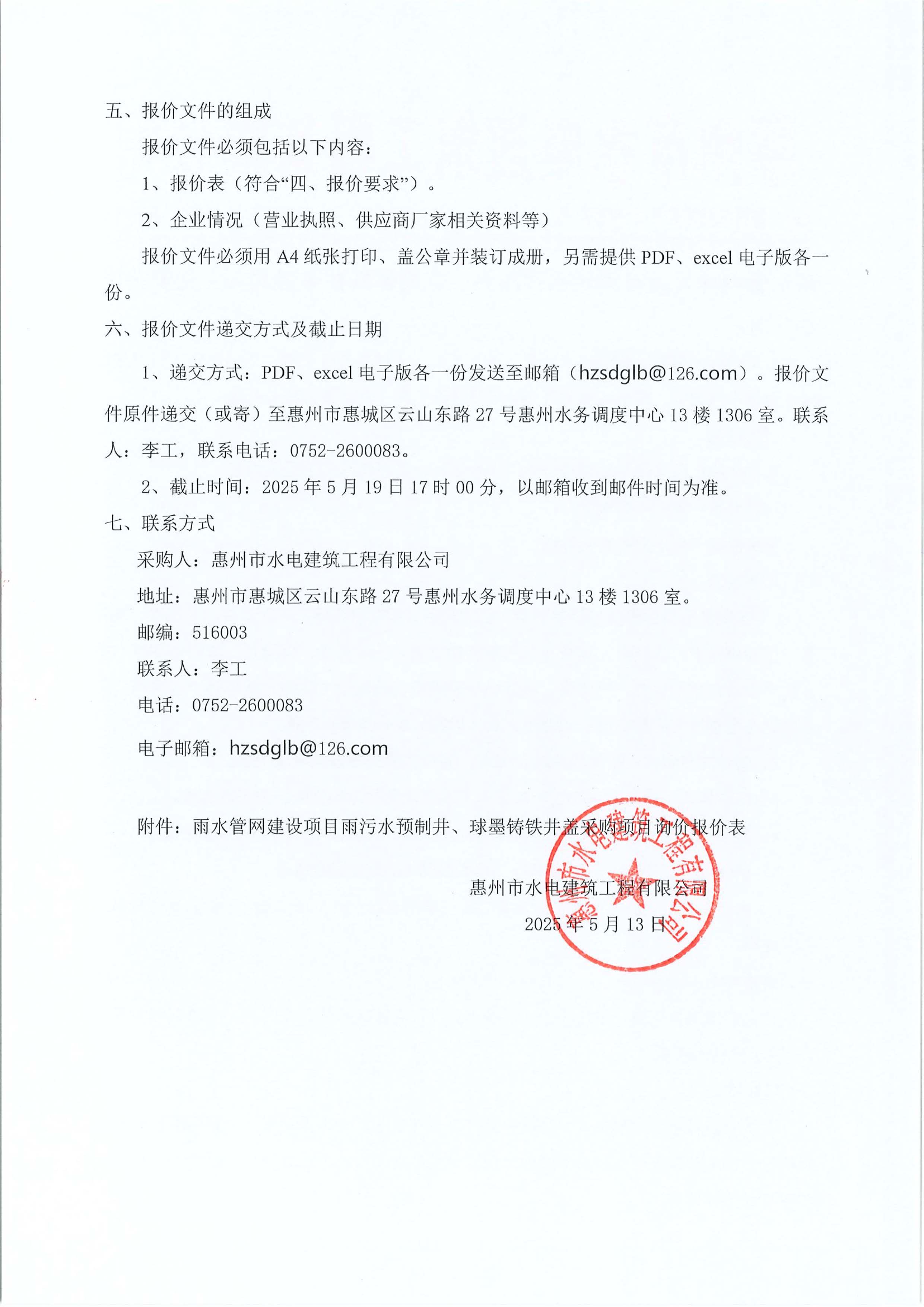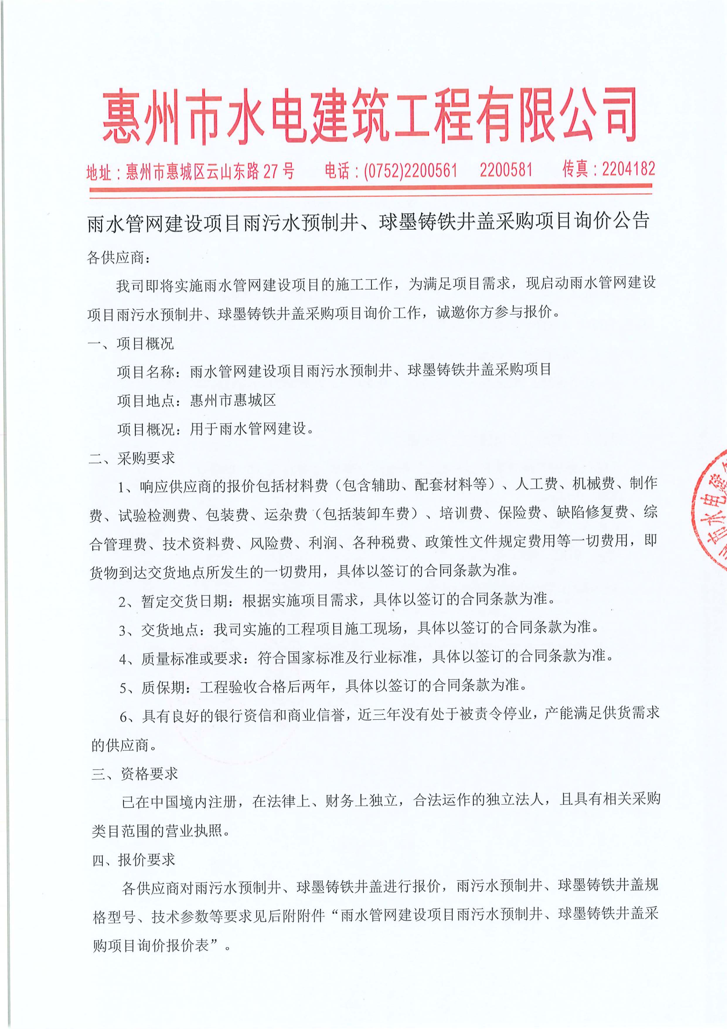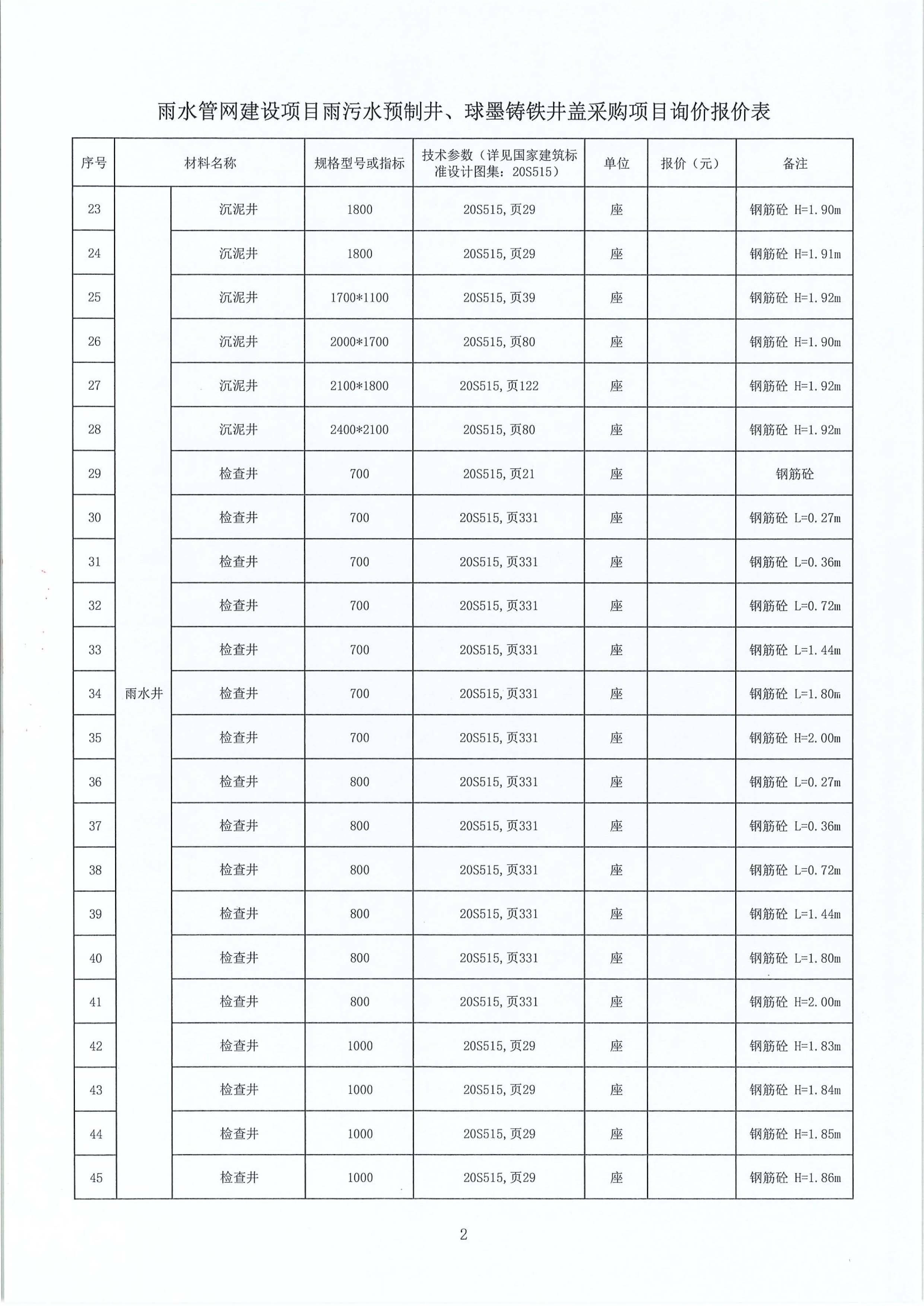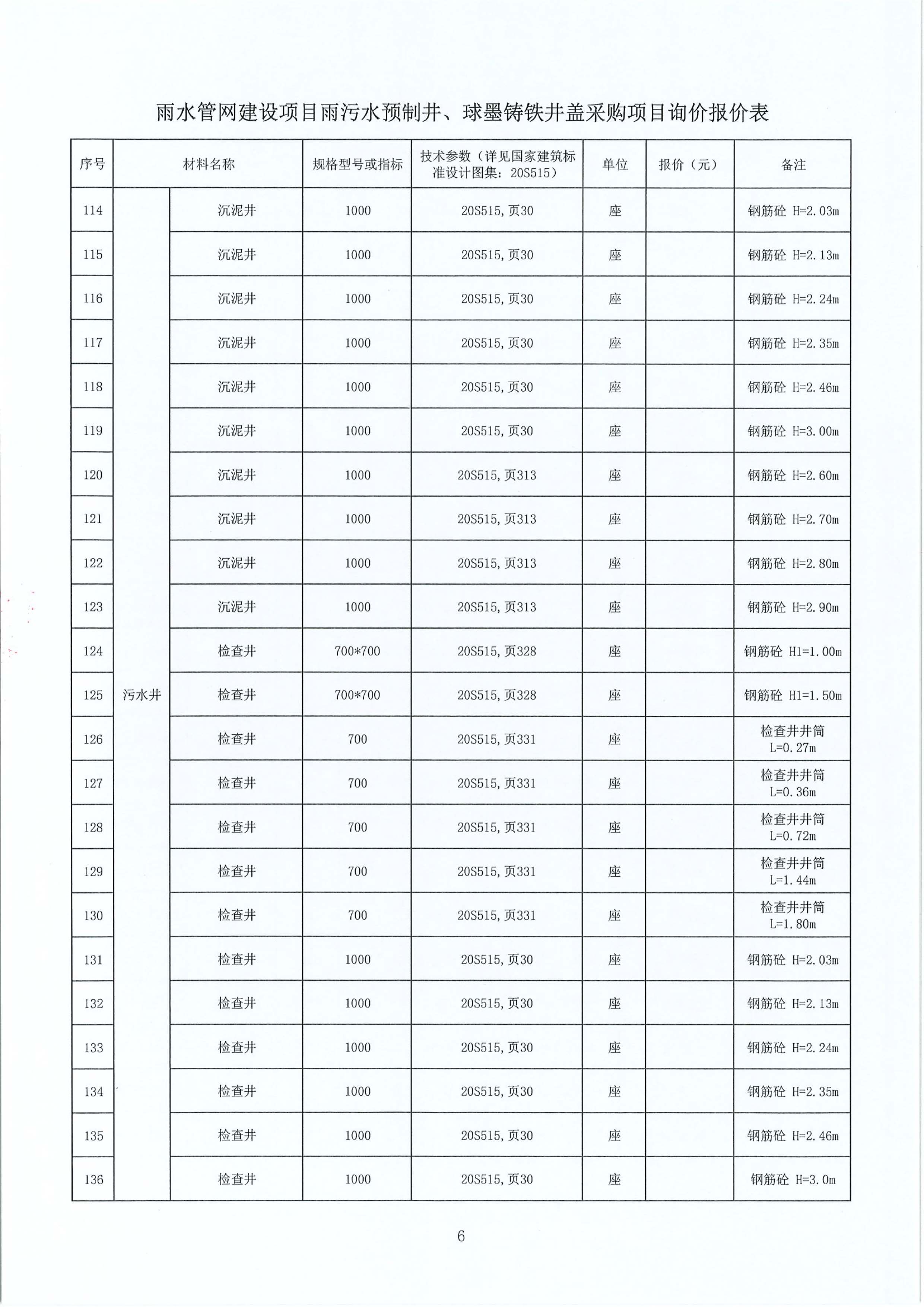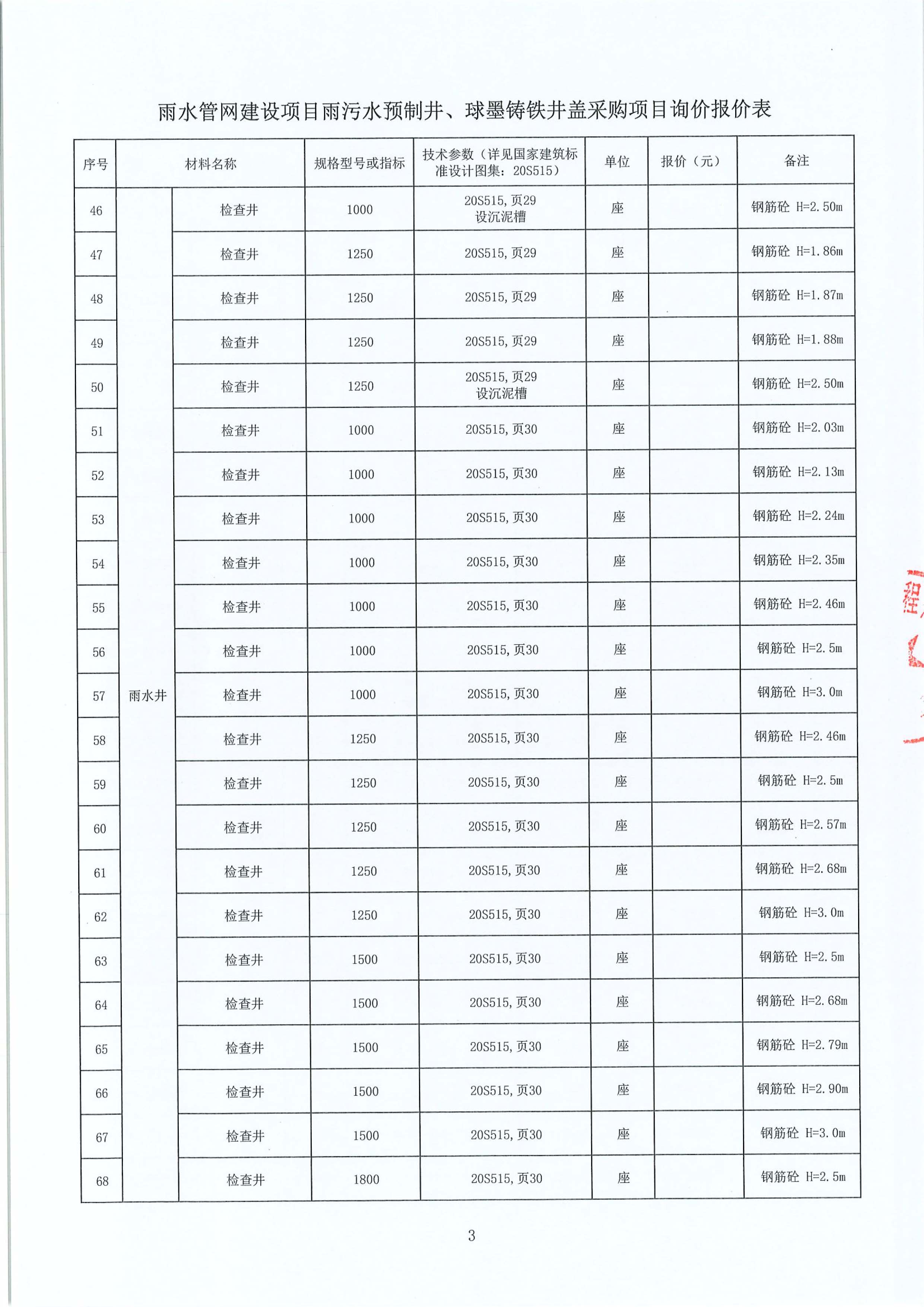 雨水管網(wǎng)建設(shè)項目雨污水預(yù)制井、球墨鑄鐵井蓋采購項目詢價公告附件: