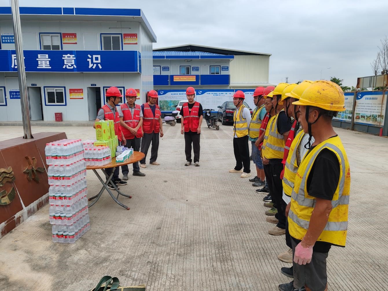 為切實做好防暑降溫工作,保障一線建設(shè)者的健康安全,5月28日上午,由我司承建的宏達(dá)路(惠大高速至一號公路段)工程(一期)臨時黨支部聯(lián)合項目部,在施工現(xiàn)場開展“夏日送清涼”慰問活動,為奮戰(zhàn)在高溫下的工人們送去黨組織的關(guān)懷與夏日的清涼。