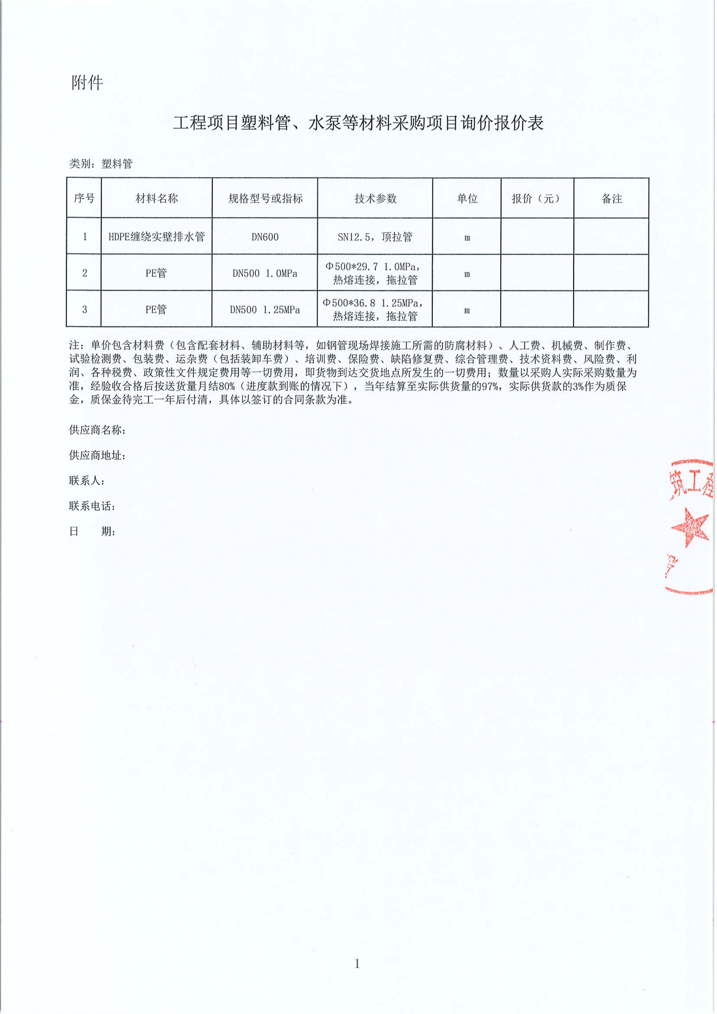 工程項目塑料管、水泵等材料采購項目詢價公告附件: