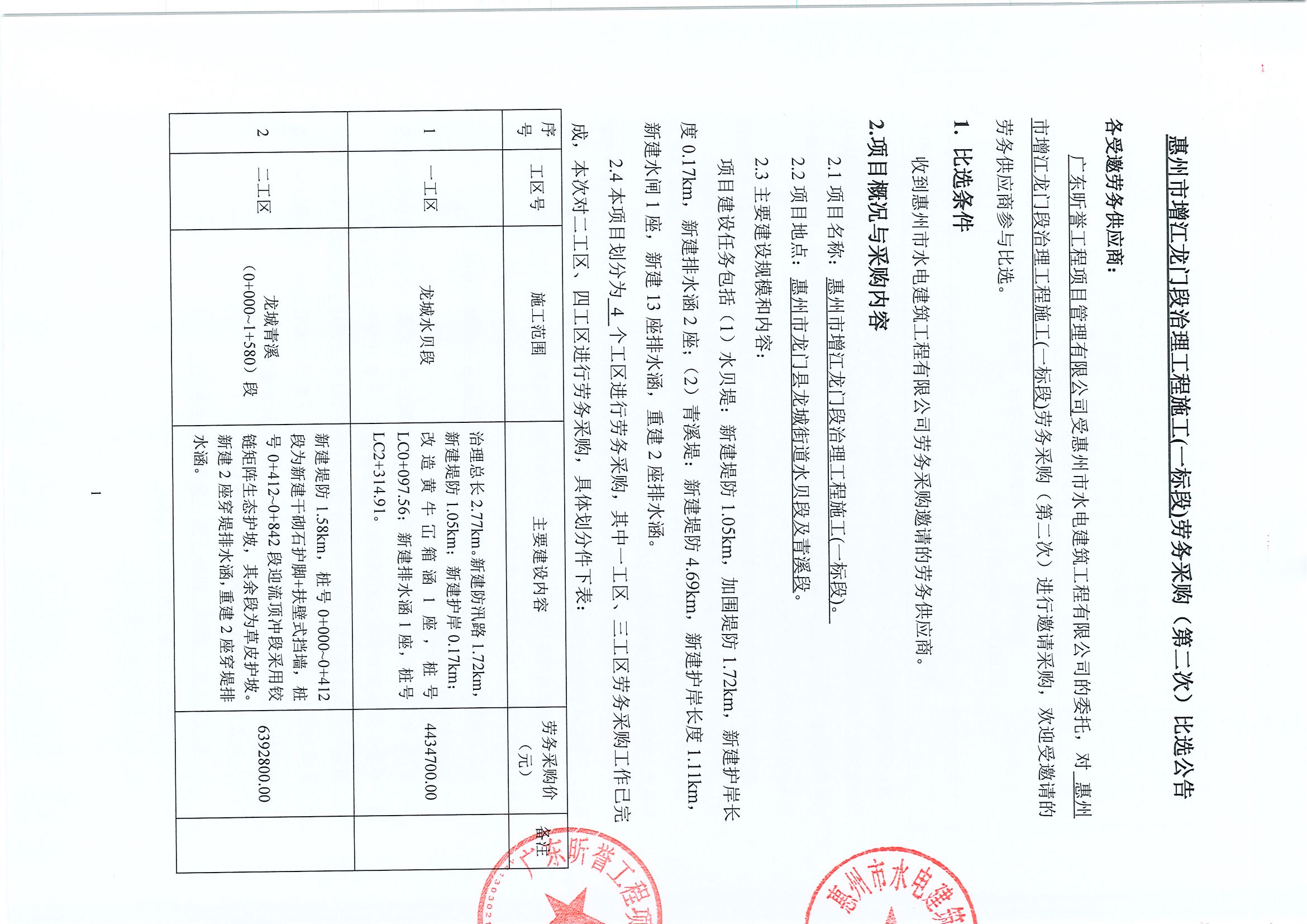 惠州市增江龍門段治理工程施工(一標(biāo)段)勞務(wù)采購(第二次)比選公告