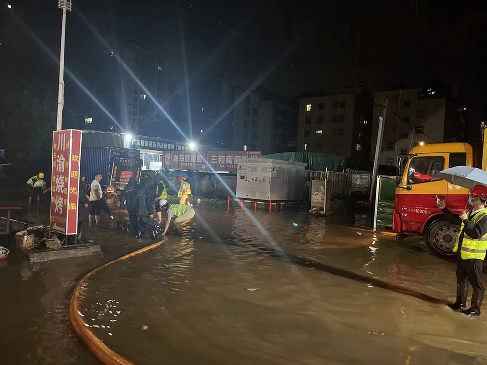 5月13日下午三時(shí)五十分,惠城區(qū)東升路麗景灣上出現(xiàn)嚴(yán)重的內(nèi)澇險(xiǎn)情,我司接到指令后,公司領(lǐng)導(dǎo)立即派出城北片區(qū)應(yīng)急搶險(xiǎn)(第一小隊(duì))12人,3臺(tái)應(yīng)急工作車,攜帶排澇設(shè)備4臺(tái)抽水泵,1臺(tái)大功率(2.5KW)應(yīng)急發(fā)電機(jī)赴現(xiàn)場(chǎng)開(kāi)展應(yīng)急排澇增援工作。經(jīng)不斷抽排,內(nèi)澇險(xiǎn)情得到有效緩解。