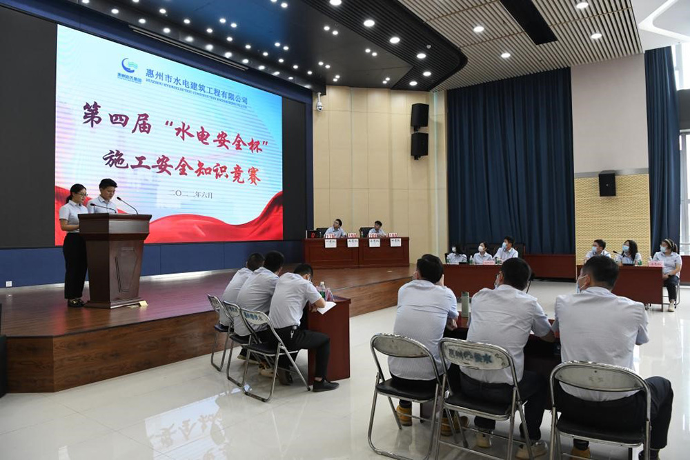 6月17日上午9:30,水務(wù)調(diào)度中心三樓報(bào)告廳熱火朝天、人聲鼎沸,惠州市水電建筑工程有限公司第四屆“水電安全杯”施工安全知識(shí)競(jìng)賽現(xiàn)場(chǎng)決賽在這里正如火如荼進(jìn)行,四支隊(duì)伍你追我趕、斗麗爭(zhēng)妍,為大家獻(xiàn)上一臺(tái)精彩好戲。