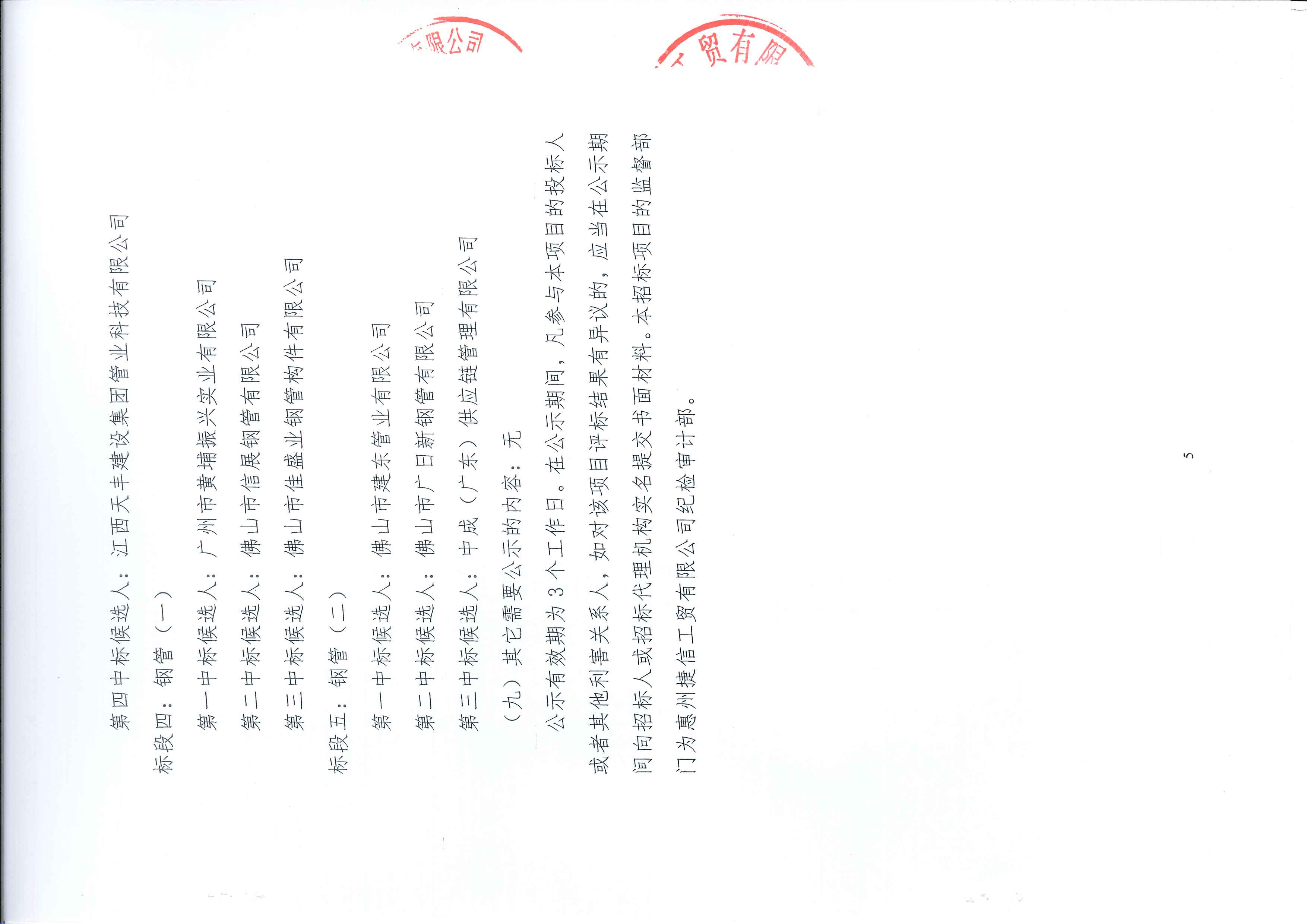 捷信工貿(mào)公司2023年度第一批管材及管件采購項(xiàng)目評標(biāo)結(jié)果公示