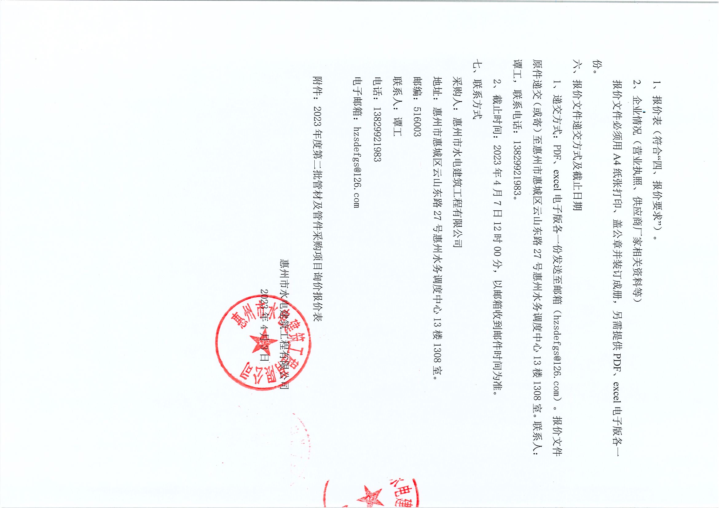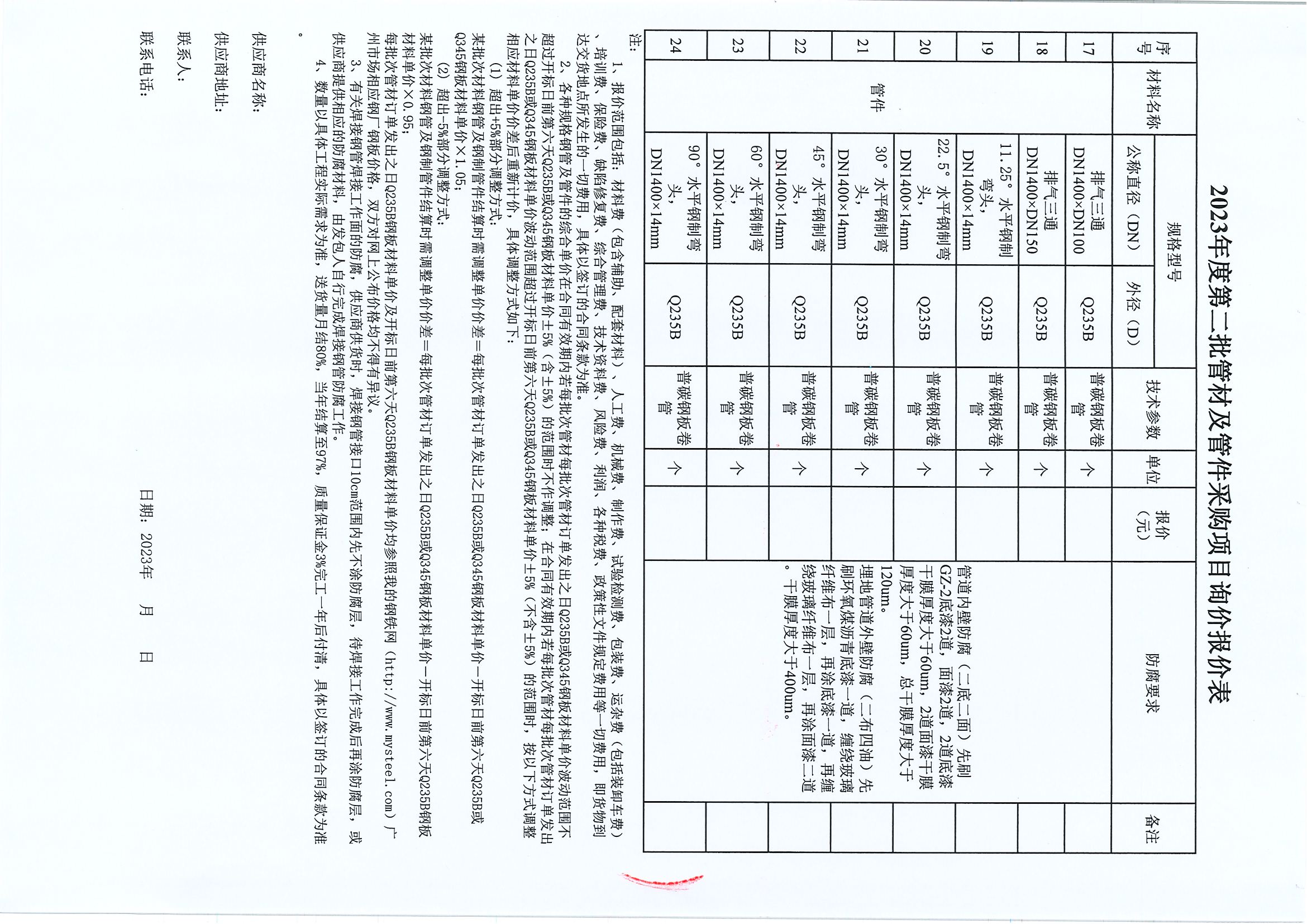 附件:2023年度第二批管材及管件采購項目詢價報價表