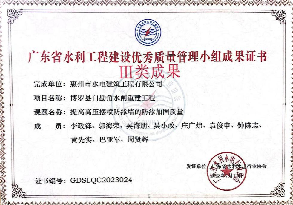 7月11日,公司技術(shù)中心相關(guān)人員前往清遠(yuǎn)參加由廣東省水利水電行業(yè)協(xié)會(huì)召開的2023年度廣東省水利建設(shè)質(zhì)量管理小組成果發(fā)表評(píng)價(jià)暨交流學(xué)習(xí)大會(huì),匯報(bào)“提高高壓擺噴防滲墻的防滲加固質(zhì)量”課題成果并獲得優(yōu)秀成果獎(jiǎng)項(xiàng)—Ⅲ類成果。