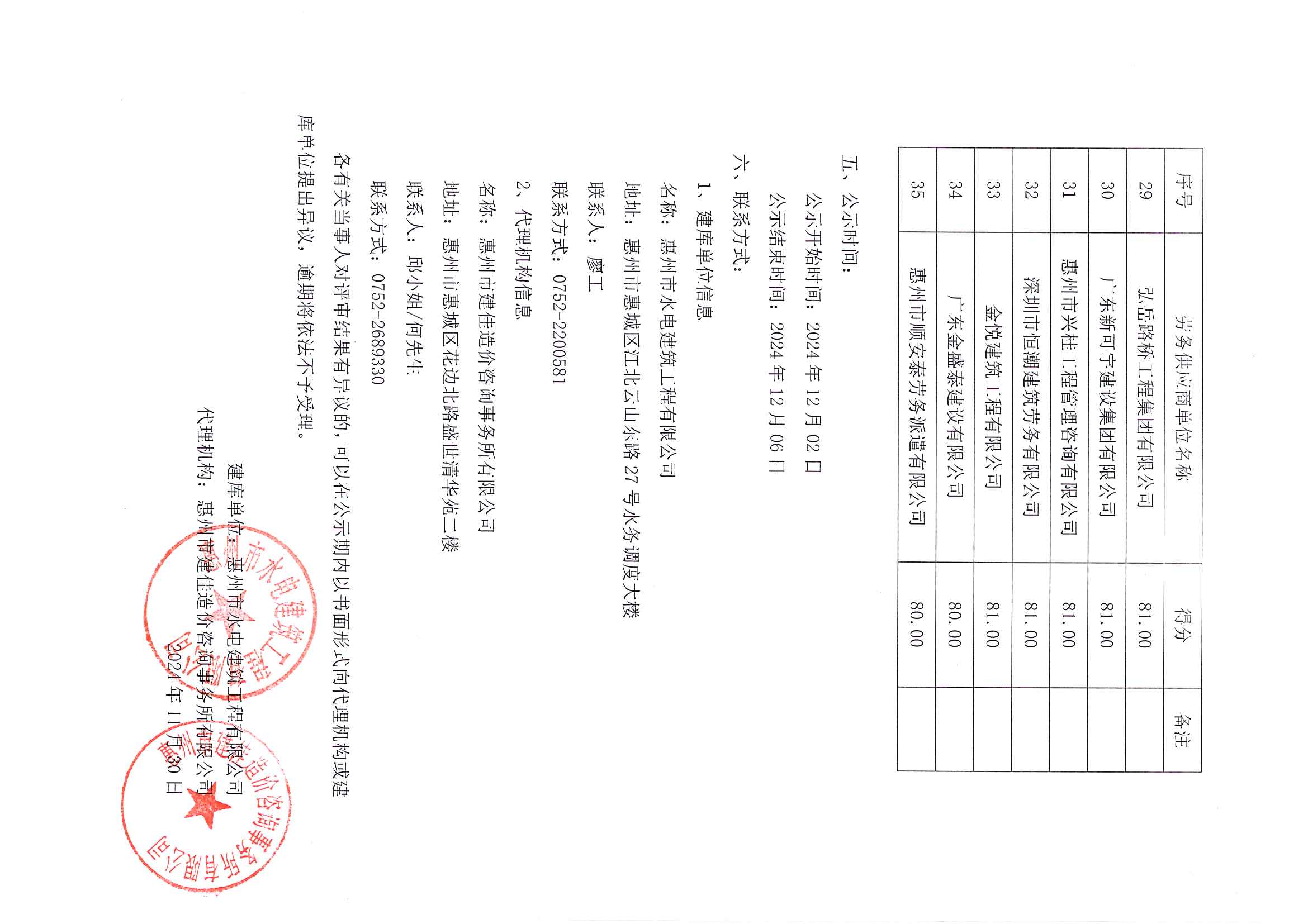 惠州市水電建筑工程有限公司勞務(wù)供應(yīng)商庫(kù)擴(kuò)庫(kù)評(píng)審結(jié)果公示