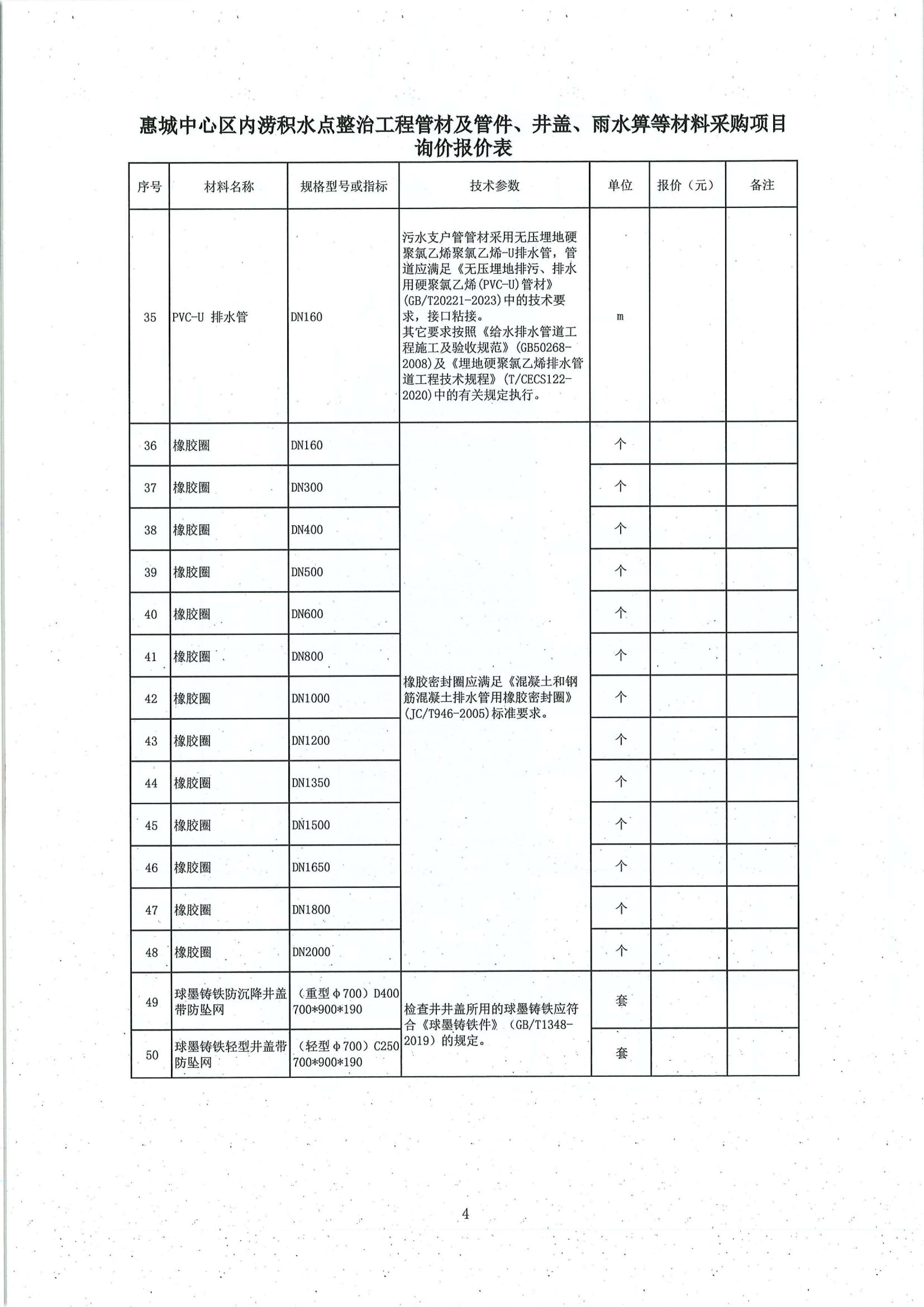 附件:惠城中心區(qū)內(nèi)澇積水點整治工程管材及管件、井蓋、雨水箅等材料采購項目詢價報價表