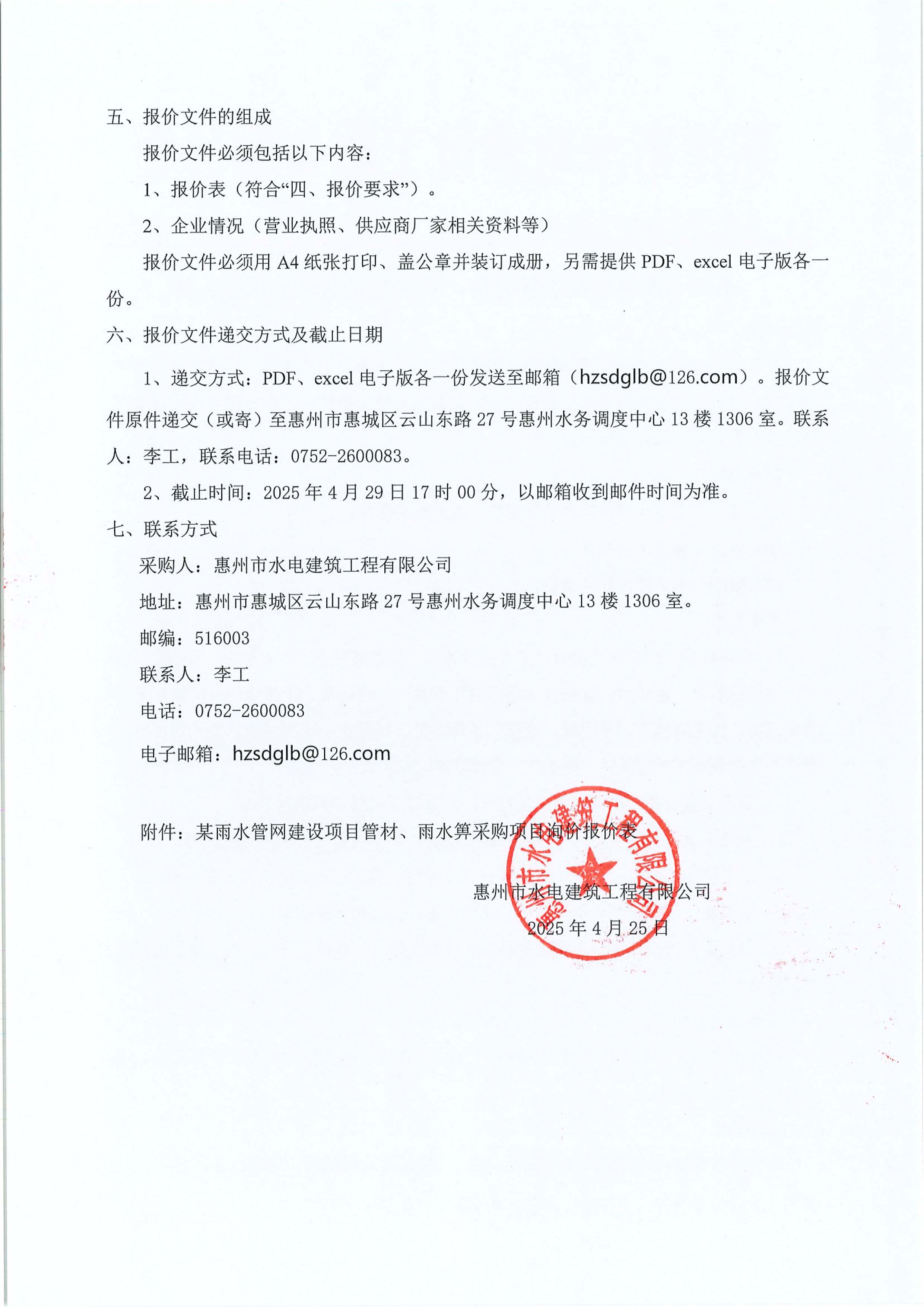 某雨水管網(wǎng)建設(shè)項目管材、雨水箅采購項目詢價公告附件: