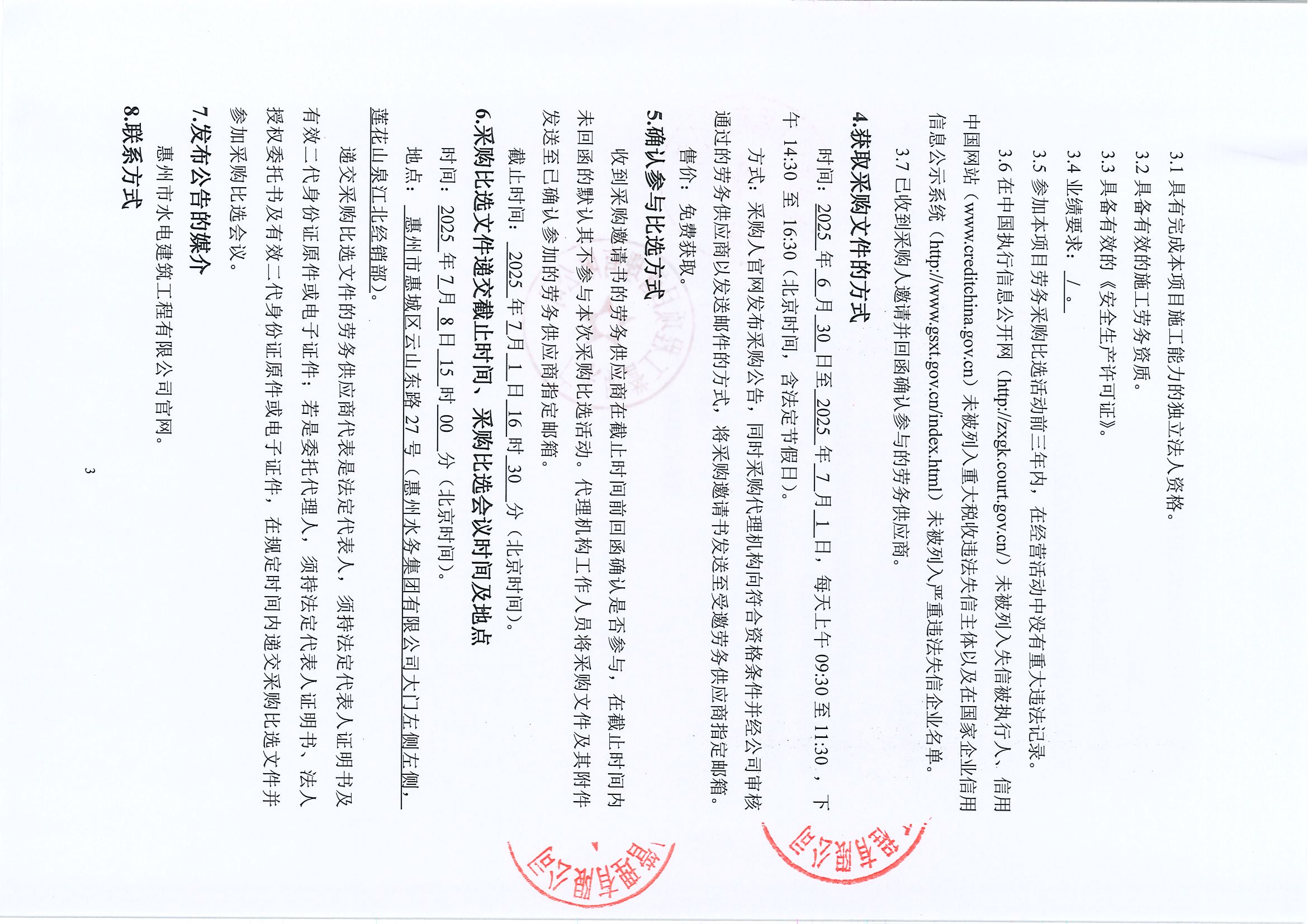 廣東省惠州市中心城區(qū)防洪排澇綜合治理工程(大湖溪水及其支流(一期)工程)施工勞務采購比選公告