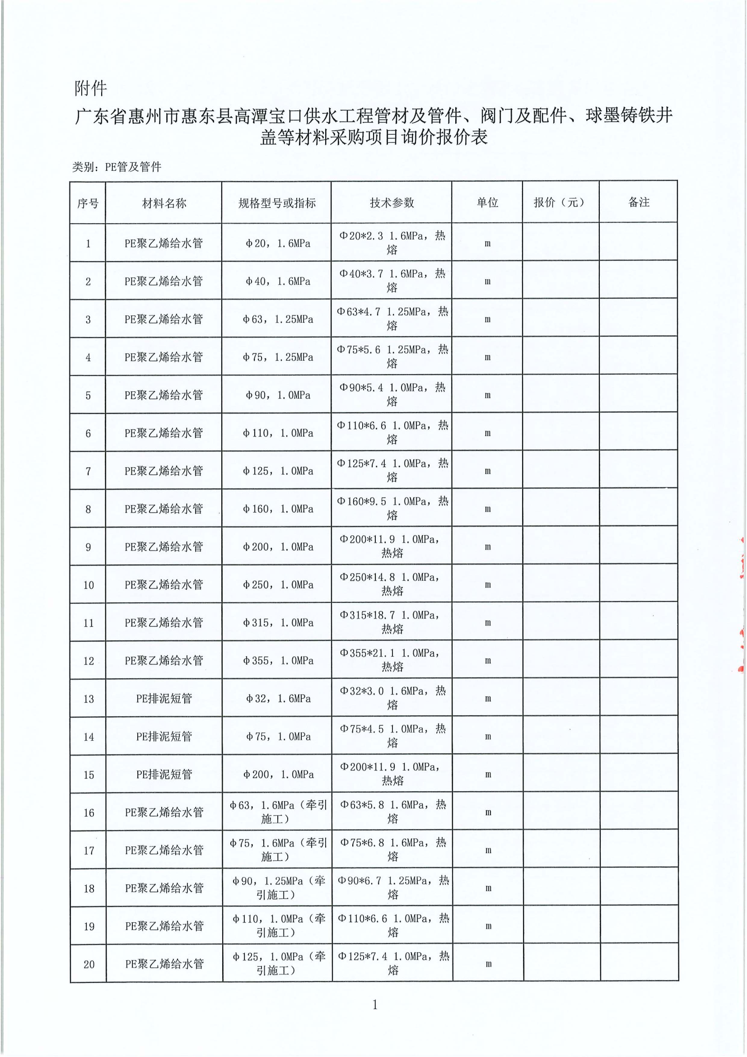 附件:廣東省惠州市惠東縣高潭寶口供水工程施工管材及管件、閥門及配件、球墨鑄鐵井蓋等材料采購項(xiàng)目詢價(jià)報(bào)價(jià)表