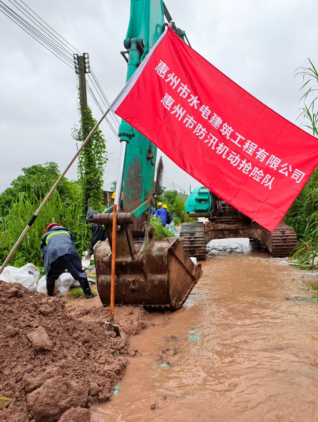 在惠陽區(qū)淡水河堤,經(jīng)過多輪強(qiáng)降水,惠陽區(qū)淡水河水位快速上漲并持續(xù)超警戒水位,部分堤段出現(xiàn)漫堤險(xiǎn)情。8月5日11時,公司接到前往現(xiàn)場執(zhí)行搶險(xiǎn)物資運(yùn)輸任務(wù),隨即調(diào)度5輛運(yùn)輸車、1臺隨車吊機(jī)、1臺叉車、50名工人及20名技術(shù)管理人員趕往運(yùn)輸點(diǎn),公司副總經(jīng)理、教授級高級工程師張建平帶隊(duì)來到現(xiàn)場,共同研討搶險(xiǎn)方案,為搶險(xiǎn)工作提供技術(shù)指導(dǎo)。從接到指令到第一、第二輛運(yùn)輸車出發(fā),僅用時1個多小時,至14時41分,全部機(jī)械設(shè)備準(zhǔn)備完畢前往搶險(xiǎn)現(xiàn)場。面對時間緊、任務(wù)重的挑戰(zhàn),搶險(xiǎn)隊(duì)員頂風(fēng)冒雨,連續(xù)作戰(zhàn),18時57分,淡水河段下游搶險(xiǎn)點(diǎn)已完成合攏,險(xiǎn)情得到有效控制,為后續(xù)防汛工作贏得了寶貴時間。