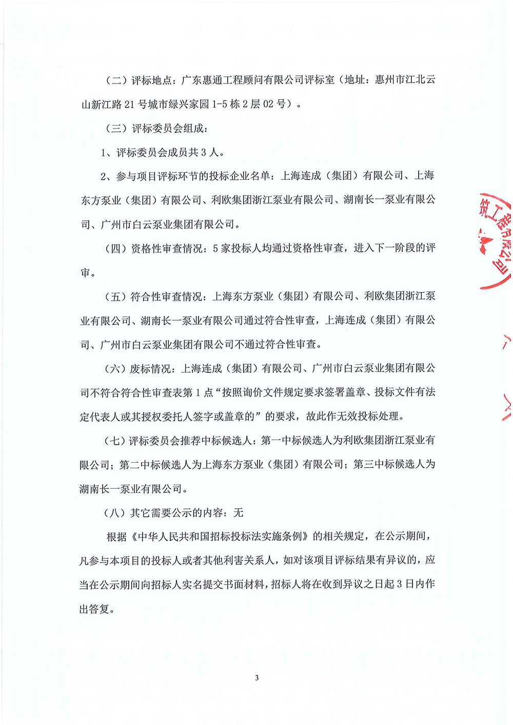 惠州新材料產(chǎn)業(yè)園起步區(qū)及粵港澳大灣區(qū)(惠州)數(shù)據(jù)產(chǎn)業(yè)園應(yīng)急供水工程勘察設(shè)計(jì)、采購(gòu)、施工總承包(EPC)項(xiàng)目水泵采購(gòu)項(xiàng)目(第二次招標(biāo))評(píng)標(biāo)結(jié)果公示