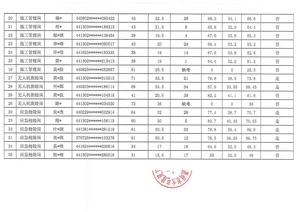 惠州市水電建筑工程有限公司“惠”聚優(yōu)才國企專場招聘總成績及進入體檢名單通告