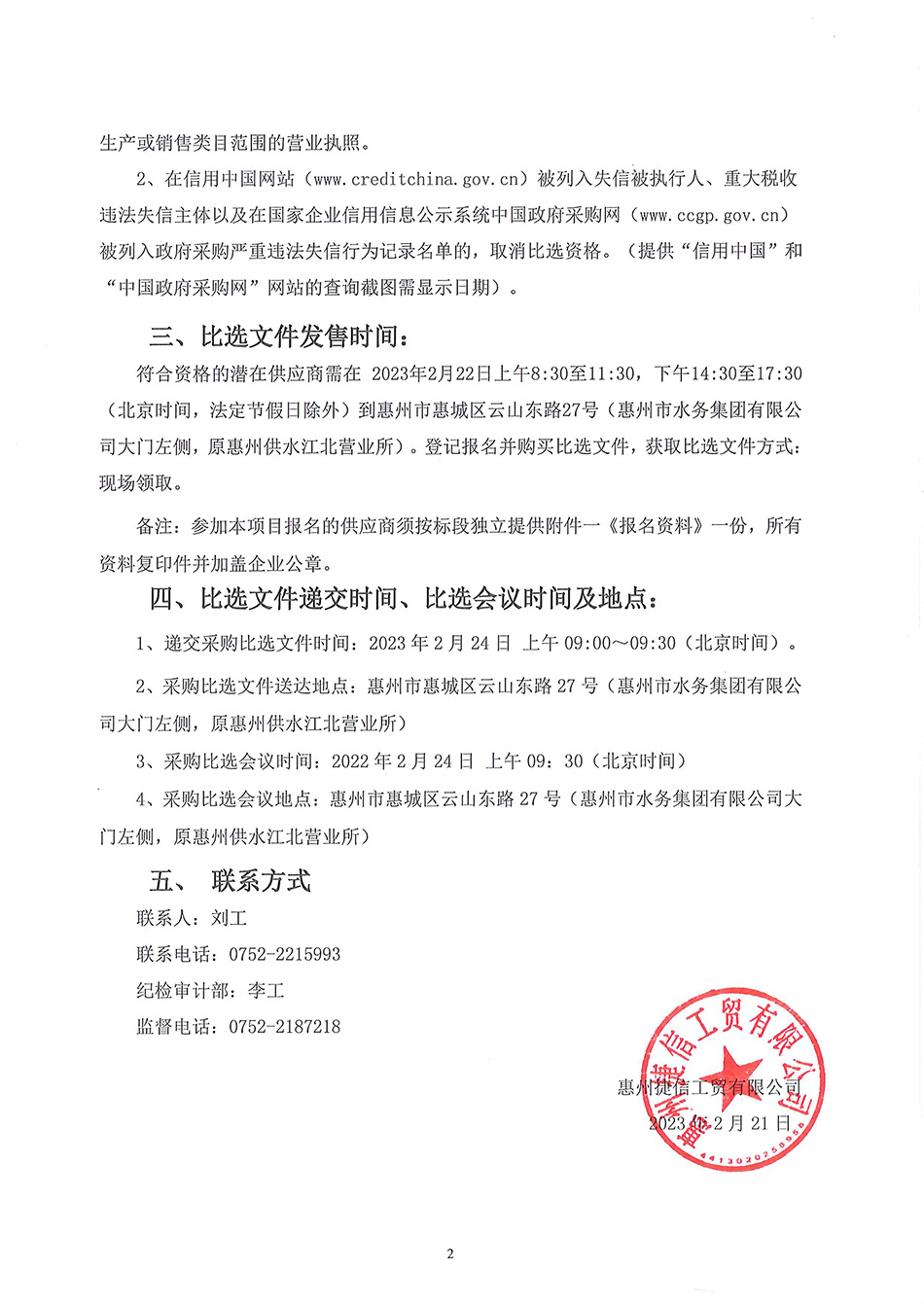 捷信工貿(mào)公司2023年度臨建設施采購項目(第二次)采購公告