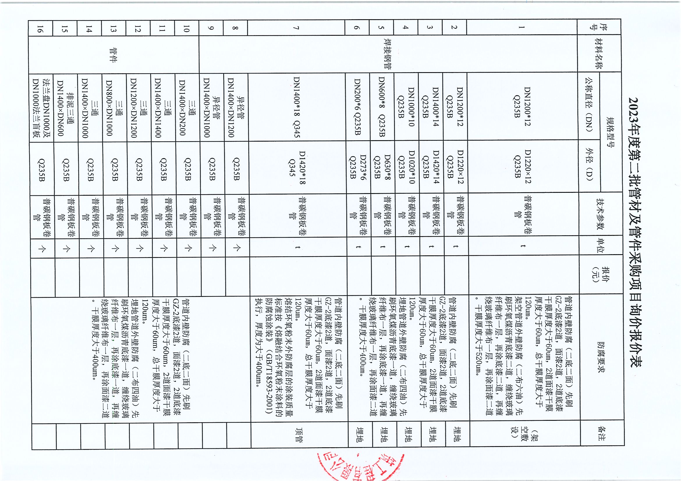 附件:2023年度第二批管材及管件采購項目詢價報價表