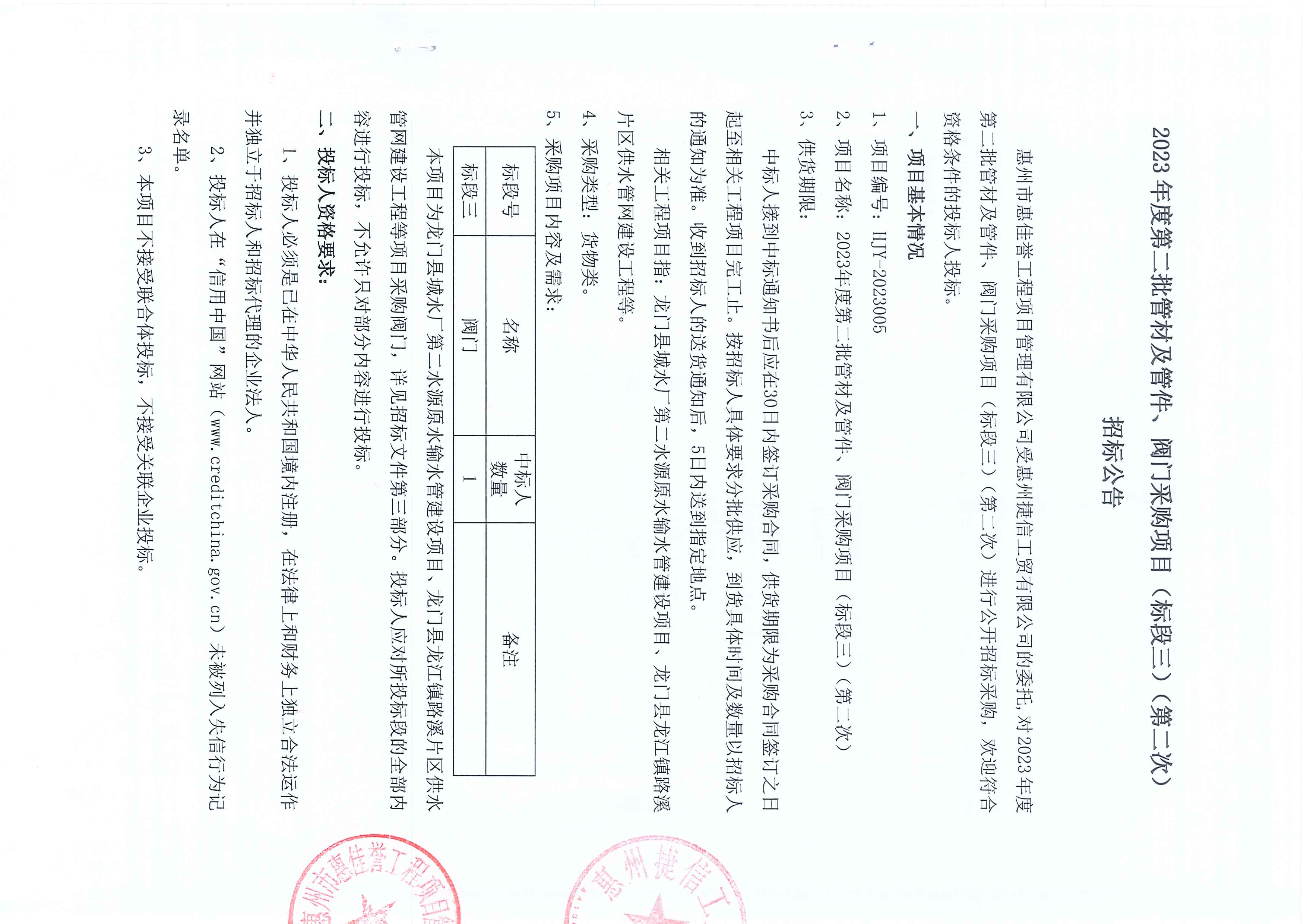 捷信工貿(mào)公司2023年度第二批管材及管件、閥門采購(gòu)項(xiàng)目(標(biāo)段三)(第二次)招標(biāo)公告