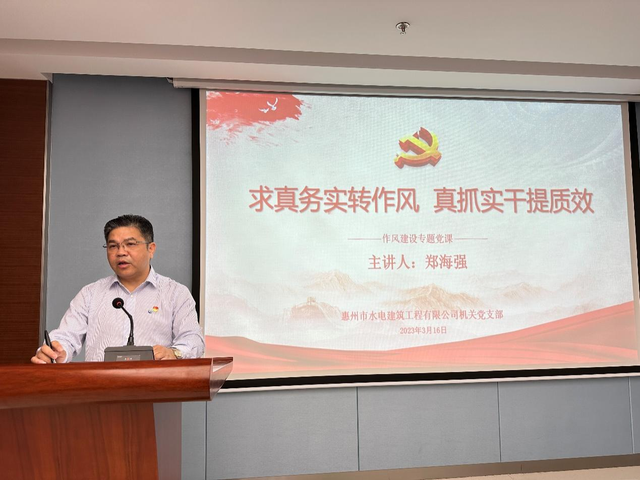 會上,黨委書記、董事長鄭海強首先以《求真務實轉(zhuǎn)作風,真抓實干提質(zhì)效》為題,為全體黨員講授專題黨課。全面回顧了黨在各個歷史時期作風建設的經(jīng)驗和成就,明確了公司作風建設的目標任務,細化了作風建設的方法路徑,教育引導廣大黨員干部深刻認識加強作風建設的極端重要性,以作風建設良好成效推動工作部署落地見效,持之以恒轉(zhuǎn)作風樹形象。